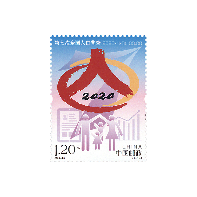 中国邮政定于2020年11月1日发行《第七次全国人口普查》纪念邮票一套1枚,全套面值1.20元,计划发行量为695万套。