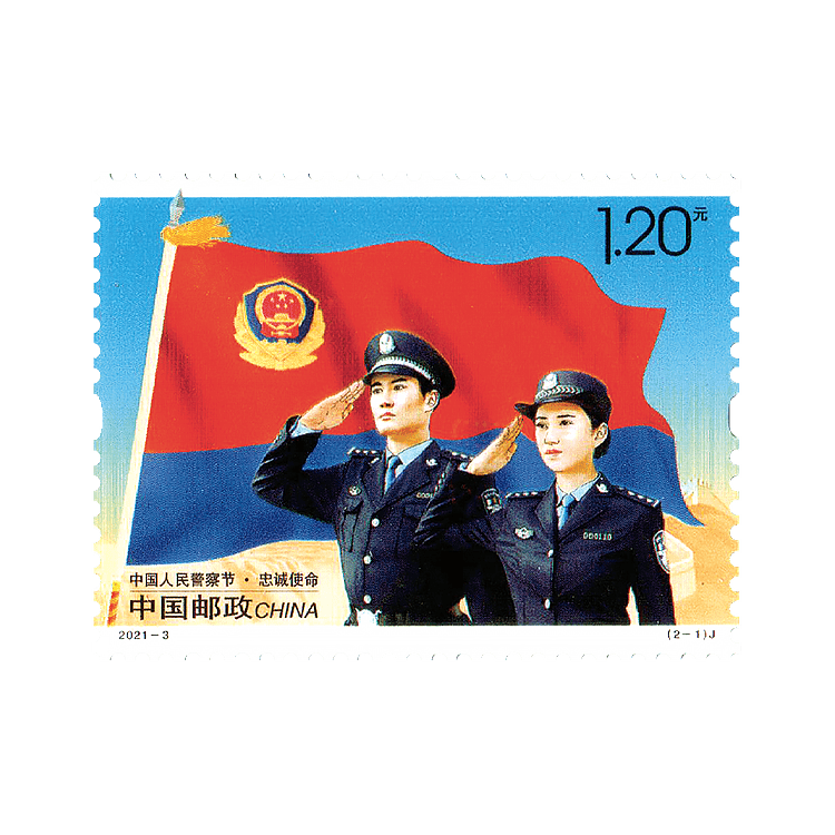 《中国人民警察节》纪念邮票分别以警旗、警徽图案和警察节日期为主要设计元素,以“忠诚使命”和“人民至上”为主题,充分体现了公安机关践行习近平总书记在中国人民警察警旗授旗仪式上的重要训词精神,牢记初心使命、勇于担当作为,坚决捍卫国家政治安全、维护社会安定、保障人民安宁的坚强信心和决心,生动描绘了公安民警为增强人民群众获得感、幸福感、安全感努力工作的战斗场景,艺术刻画了人民警察爱岗敬业、一心为民、无私奉献的良好形象。