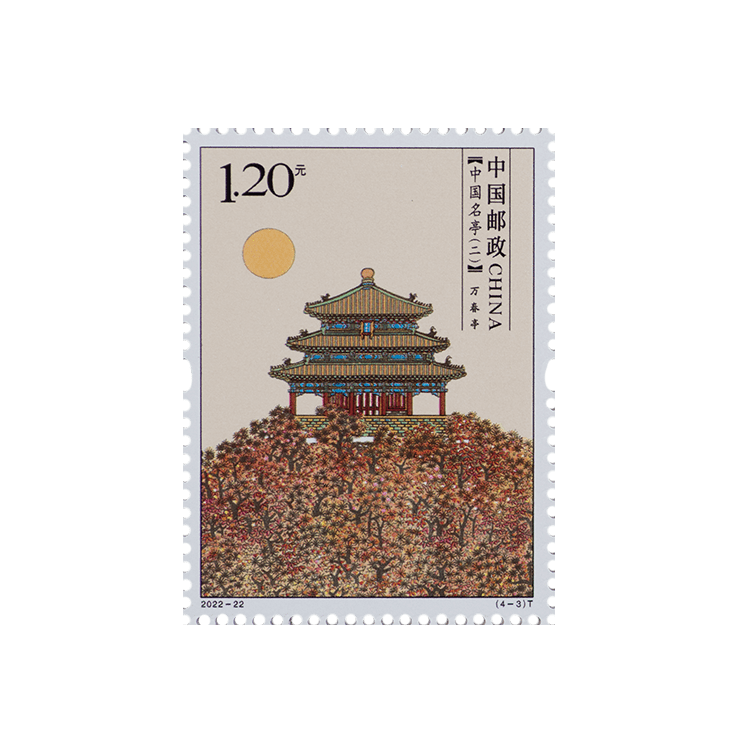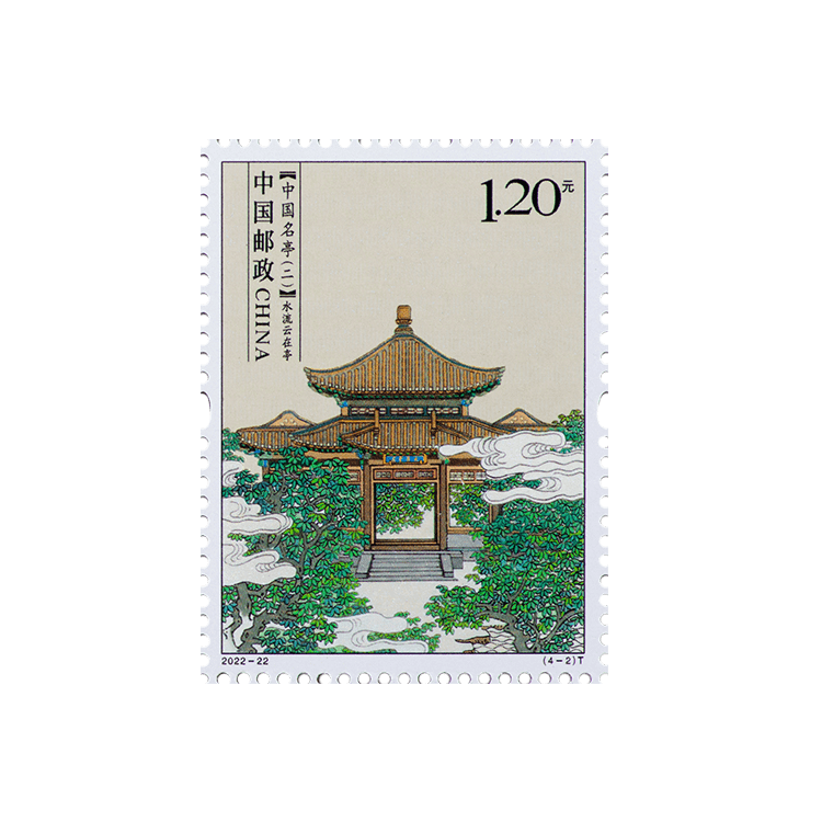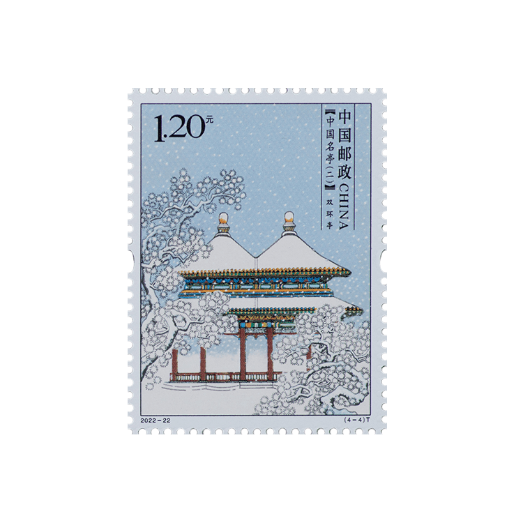 中国邮政定于2022年10月3日发行《中国名亭(二)》特种邮票1套4枚。邮票图案名称分别为:知春亭、水流云在亭、万春亭、双环亭。全套邮票面值为4.80元。