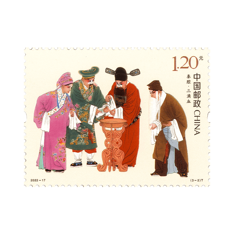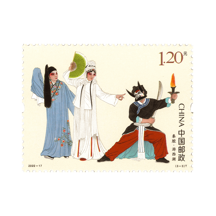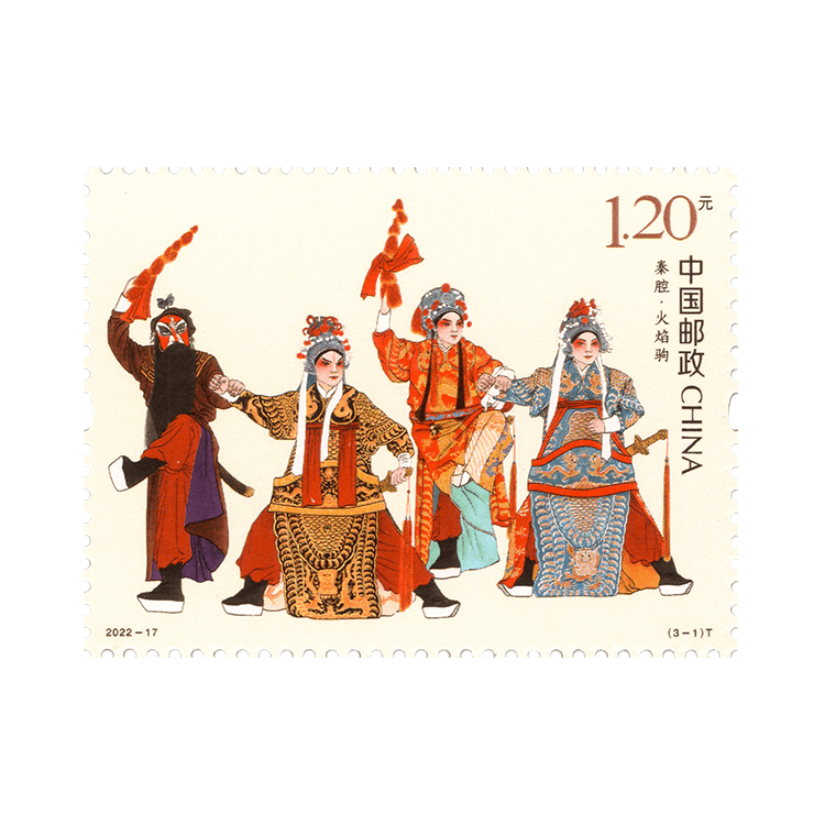 中国邮政定于2022年8月13日发行《秦腔》特种邮票一套3枚。邮票图案名称分别为:火焰驹、三滴血、游西湖。全套邮票面值为3.60元。邮票计划发行数量为698万套。