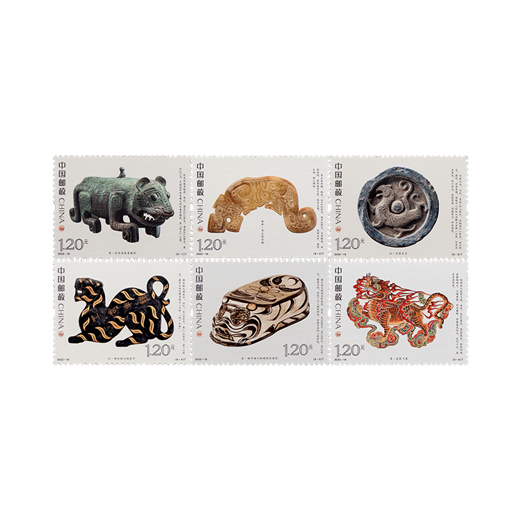 中国邮政定于2022年9月5日发行《虎(文物)》特种邮票一套6枚。