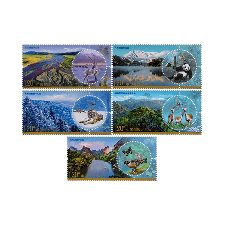 中国邮政定于2022年11月5日发行《国家公园》纪念邮票1套5枚,邮票图案名称分别为三江源国家公园、大熊猫国家公园、东北虎豹国家公园、海南热带雨林国家公园和武夷山国家公园。全套邮票面值6.00元。邮票计划发行数量为760万套。