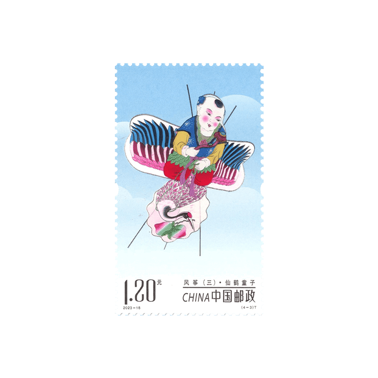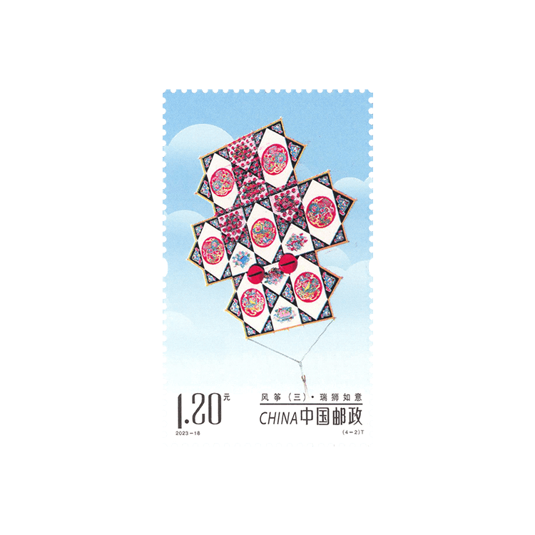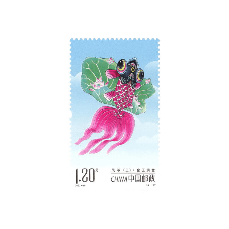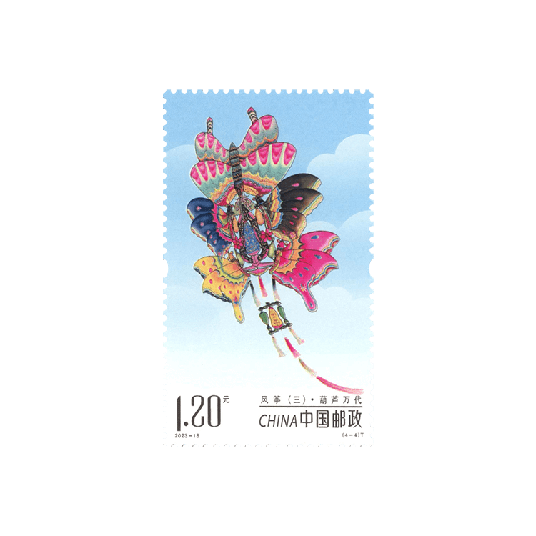 中国邮政定于2023年9月9日发行《风筝(三)》特种邮票一套4枚,邮票图案名称为金玉满堂、瑞狮如意、仙鹤童子、葫芦万代。全套邮票面值4.80元。