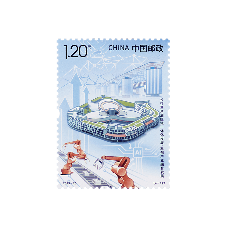 中国邮政定于2023年12月1日发行《长江三角洲区域一体化发展》特种邮票一套4枚,邮票图案名称分别为科创产业融合发展、生态环境共保联治、公共服务便利共享、高水平协同开放。全套邮票面值4.80元。