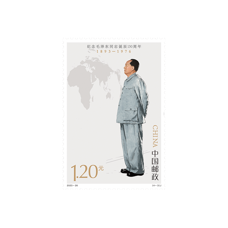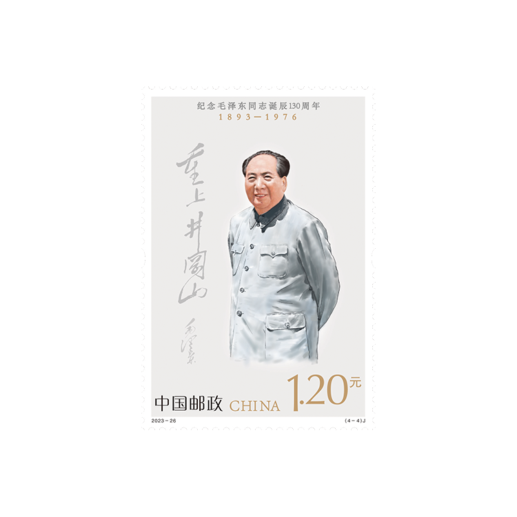 中国邮政定于2023年12月26日发行《纪念毛泽东同志诞辰130周年》纪念邮票1套4枚,邮票图案名称分别为坚持抗战、建设十三陵水库、胸怀天下、重上井冈山。全套邮票面值4.80元。