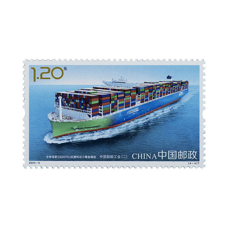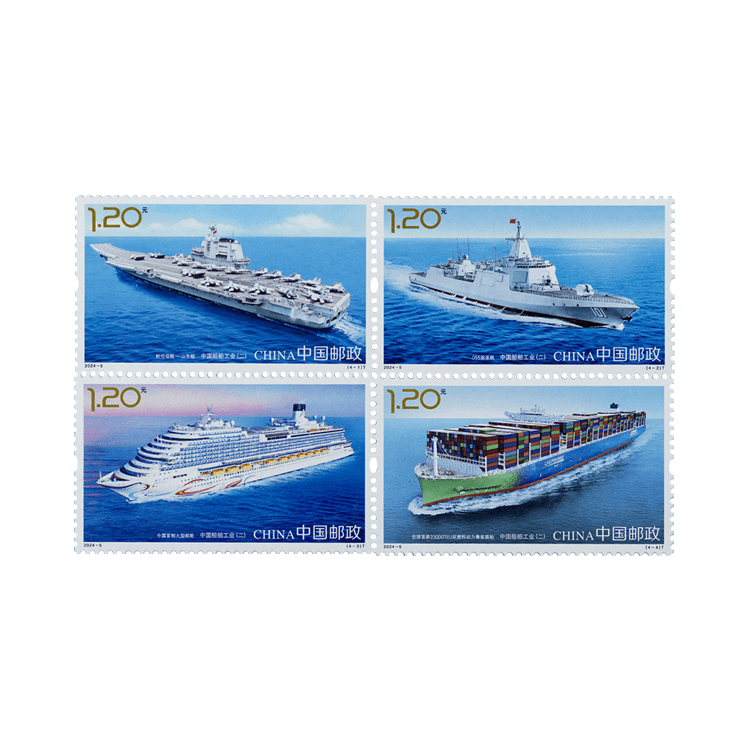 中国邮政定于2024年4月23日发行《中国船舶工业(二)》特种邮票1套4枚。