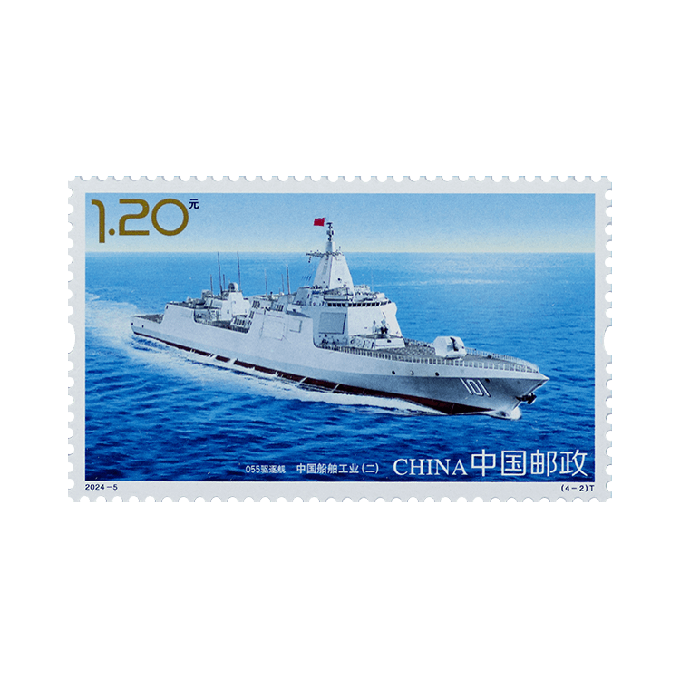中国邮政定于2024年4月23日发行《中国船舶工业(二)》特种邮票1套4枚,邮票图案名称分别为:航空母舰——山东舰;055驱逐舰;中国首制大型邮轮;全球首款 23000TEU双燃料动力集装箱船。全套邮票面值4.80元。邮票计划发行数量为套票740万套、版式二90万版。
