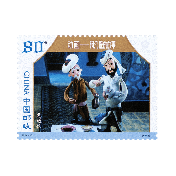 中国邮政定于2024年6月1日发行《动画——阿凡提的故事》特种邮票1套5枚,邮票图案名称为卖树荫、兔送信、神医、宝驴、种金子。全套邮票面值5.20元。邮票计划发行数量为580万套。
