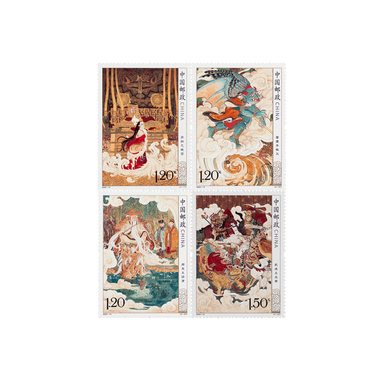 中国邮政定于2024年7月13日发行《封神演义(一)》特种邮票1套4枚,小型张1枚,邮票图案名称为苏妲己进宫、雷震子救父、周文王访贤、武成王反商,小型张图案名称为哪吒闹东海。全套邮票面值11.10元。邮票计划发行数量为套票686.45万套,版式二83.15万版,小型张530.2万枚。