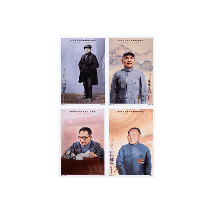 中国邮政定于 2024 年 8 月 22 日发行《纪念邓小平同志诞辰120 周年》纪念邮票 1 套 4 枚。