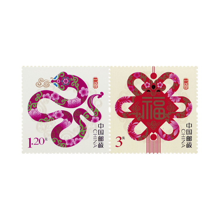 中国邮政定于 2024 年 11 月 22 日发行《蛇跃涌春》《灵蛇送 福》贺年专用邮票 2 枚。
