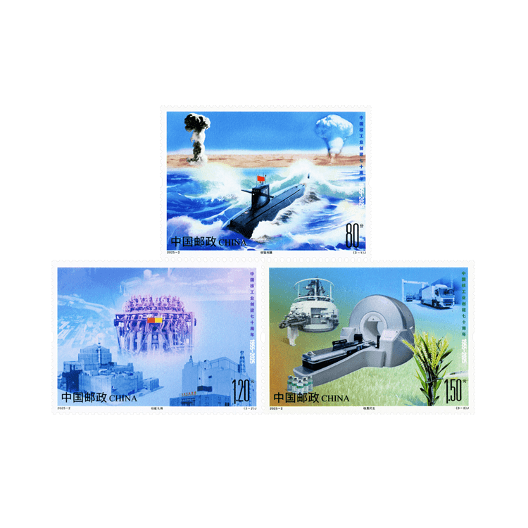中国邮政定于 2025 年 1 月 15 日发行《中国核工业创建七十周年》纪念邮票 1 套 3 枚。