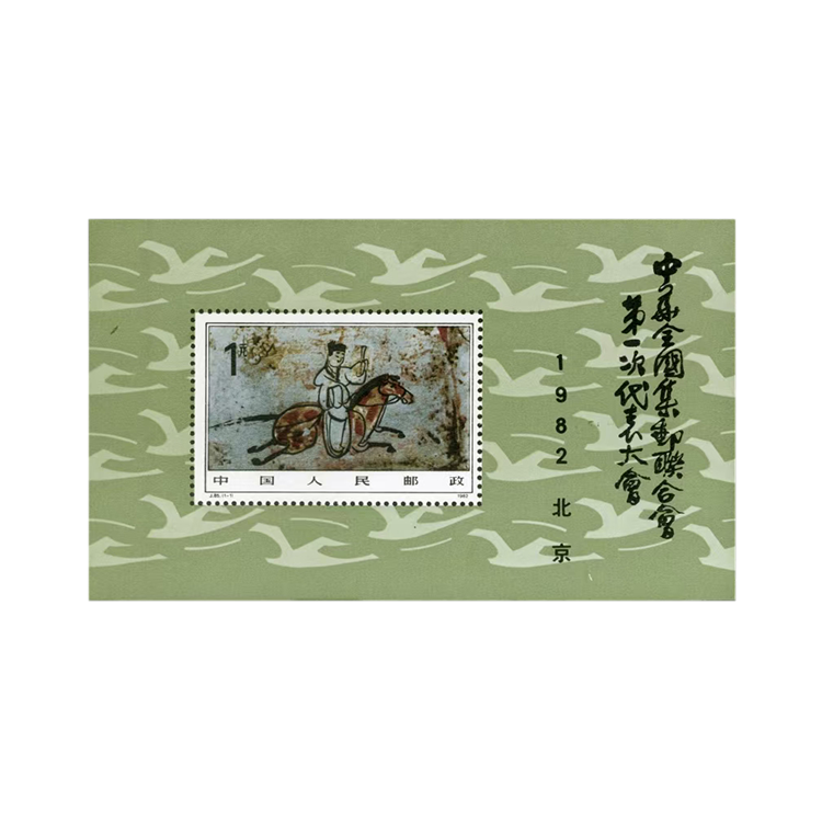 本套小全张邮票共1枚。主体图案为“驿使图”,是甘肃省嘉峪关魏晋时期的墓室壁画。
