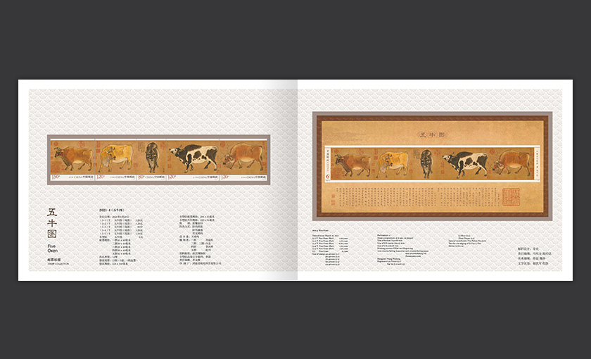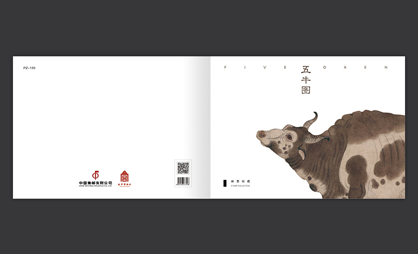 《五牛图》PZ邮折收录了《五牛图》套票、小型张,一套邮折展现邮票上的全部内容,附邮票发行信息,小巧精致却不失内涵。