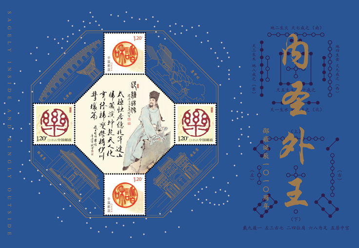2021年是“北宋五子”中邵雍诞辰一千零一十周年,中国集邮有限公司特别发行《内圣外王——邵雍诞辰一〇一〇周年》个性化邮票折。