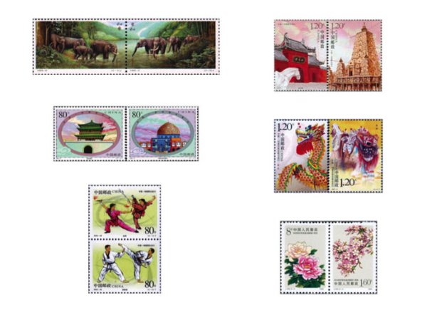 1.双连版式 创意附票 体育题材龙头 这是个性化邮票双连张集藏新品类的首款体育题材邮票,采用双连编排形式,上下连在主体部分相互呼应的同时,首次在齿孔附票区域创意设计不同的图案。