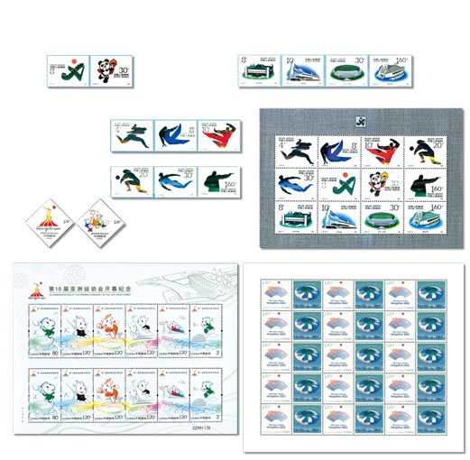 亮点二:收录北京、广州、杭州亚运会邮票,代表我国的亚运足迹