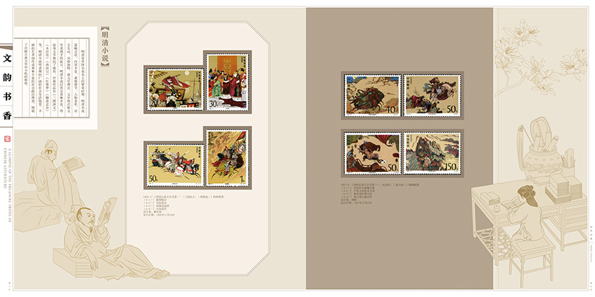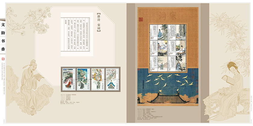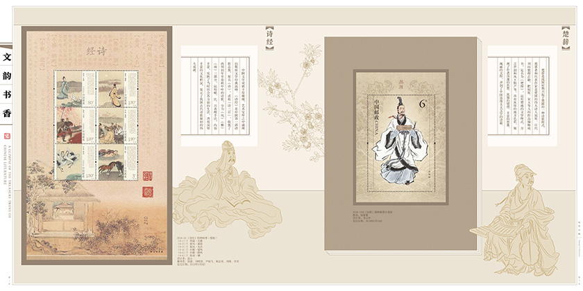 2018-24 《诗经》套票版、2012-23 《宋词》套票版、 2014-29 《元曲》套票版、2018-15 《屈原》小型张、2015-27 《诗词歌赋》 套票、 2001-7 《中国古典文学名著——聊斋志异(第一组)》套票、1994-17 《中国古典文学名著——〈三国演义〉(第四组)》套票 、1997-21 《中国古典文学名著——〈水浒传〉(第五组)》 套票 、2016-15 《中国古典文学名著——红楼梦(二)》 套票、 2023-5 《中国古典文学名著——西游记(五)》 版式一 、四方连邮票折、《中国古典文学名著——红楼梦》全张邮票折