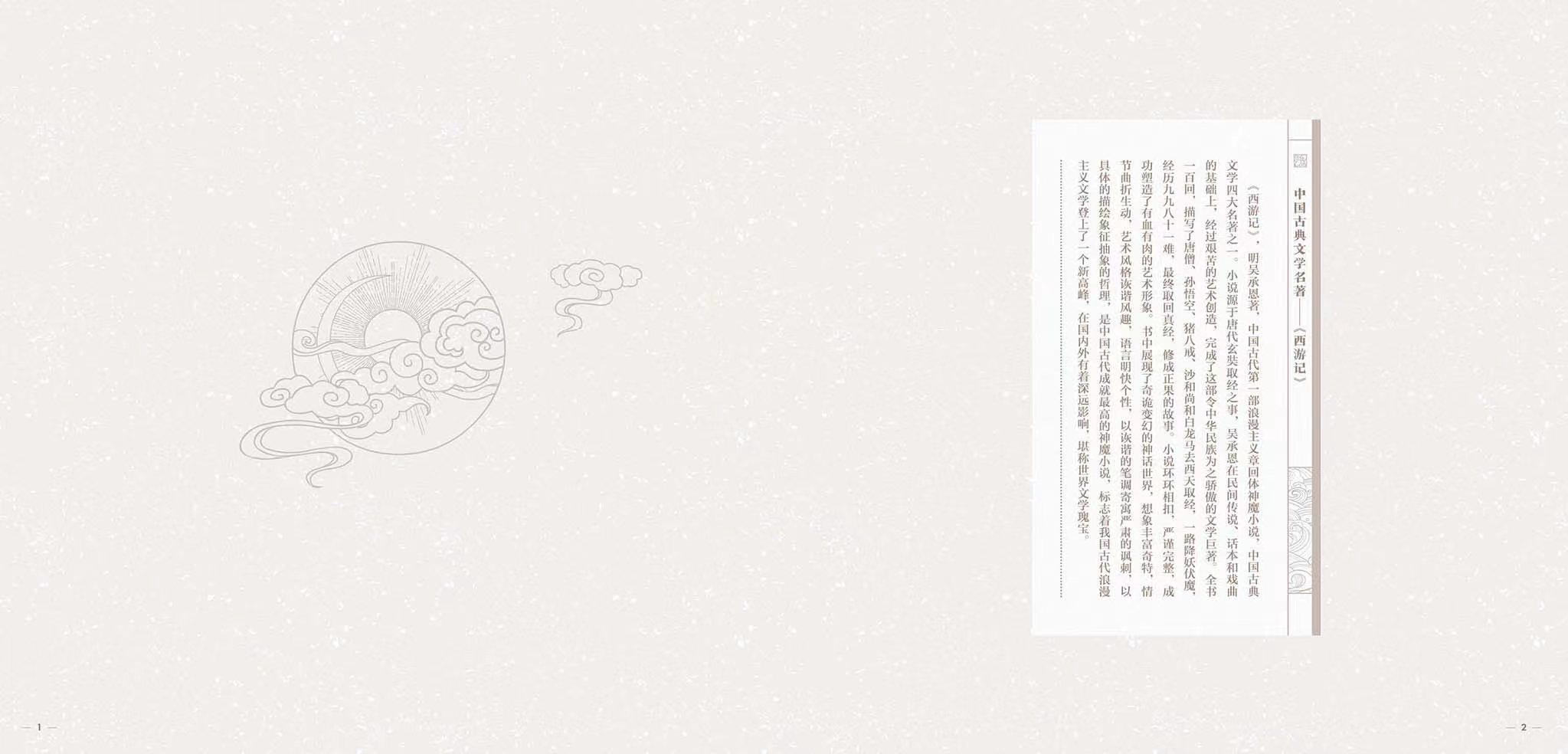 封套和封面设计,选用范生福老师画作的经典局部展开。封套整体简洁,背景隐约西游记故事的神话意境。