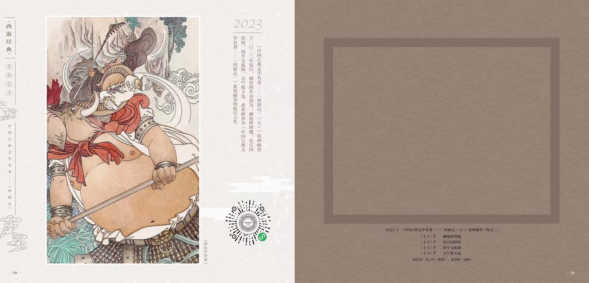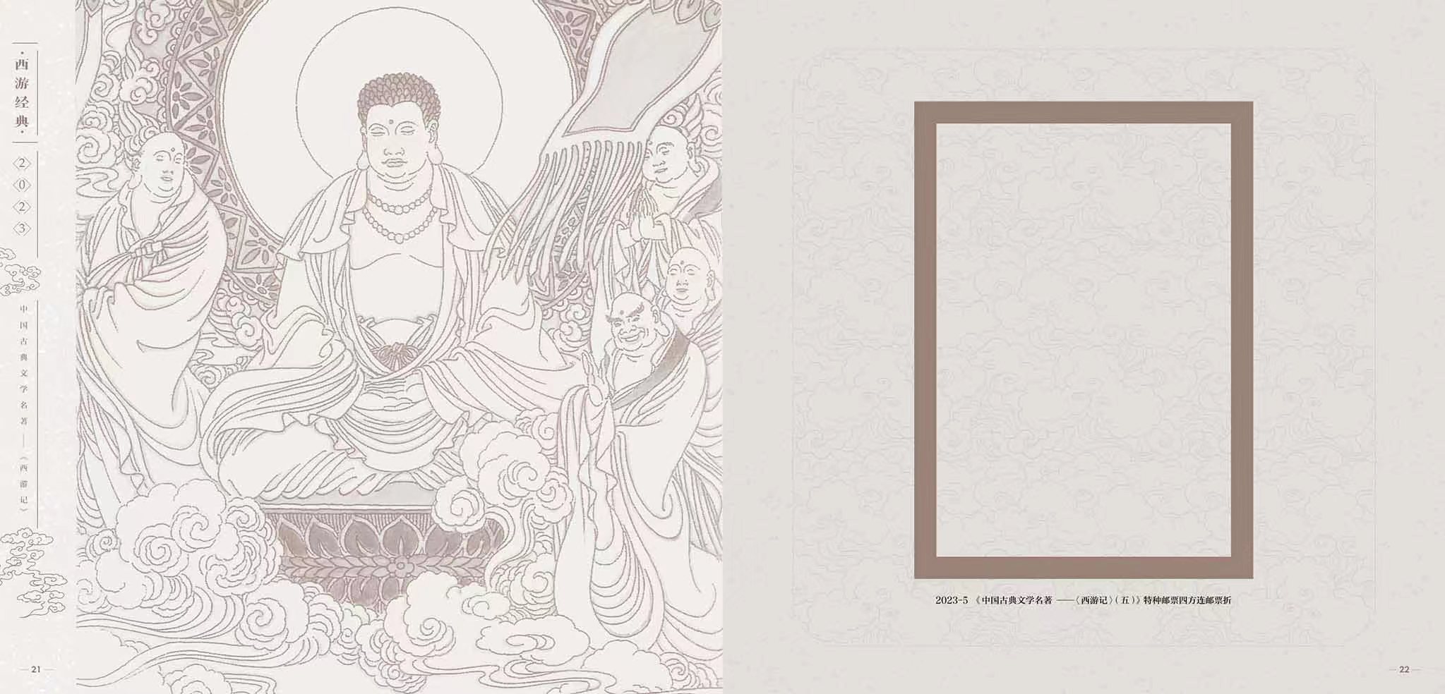 2023-5中国古典文学名著-《西游记》(五)版式二、四方连邮票折; 2015-8 中国古典文学名著-《西游记》(一)版式二、四方连邮票折;2017-7 中国古典文学名著-《西游记》(二)版式二、四方连邮票折;2019-6 中国古典文学名著-《西游记》(三)版式二;2021-7 中国古典文学名著-《西游记》(四)版式二。