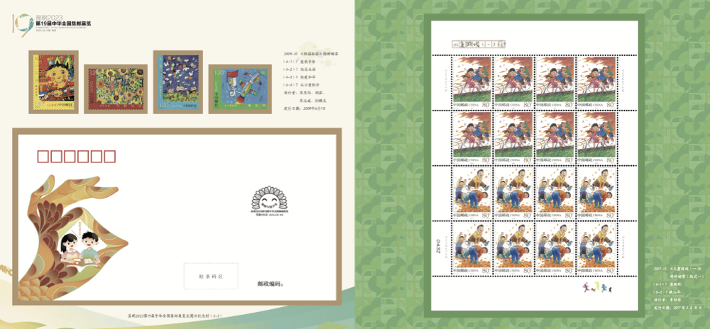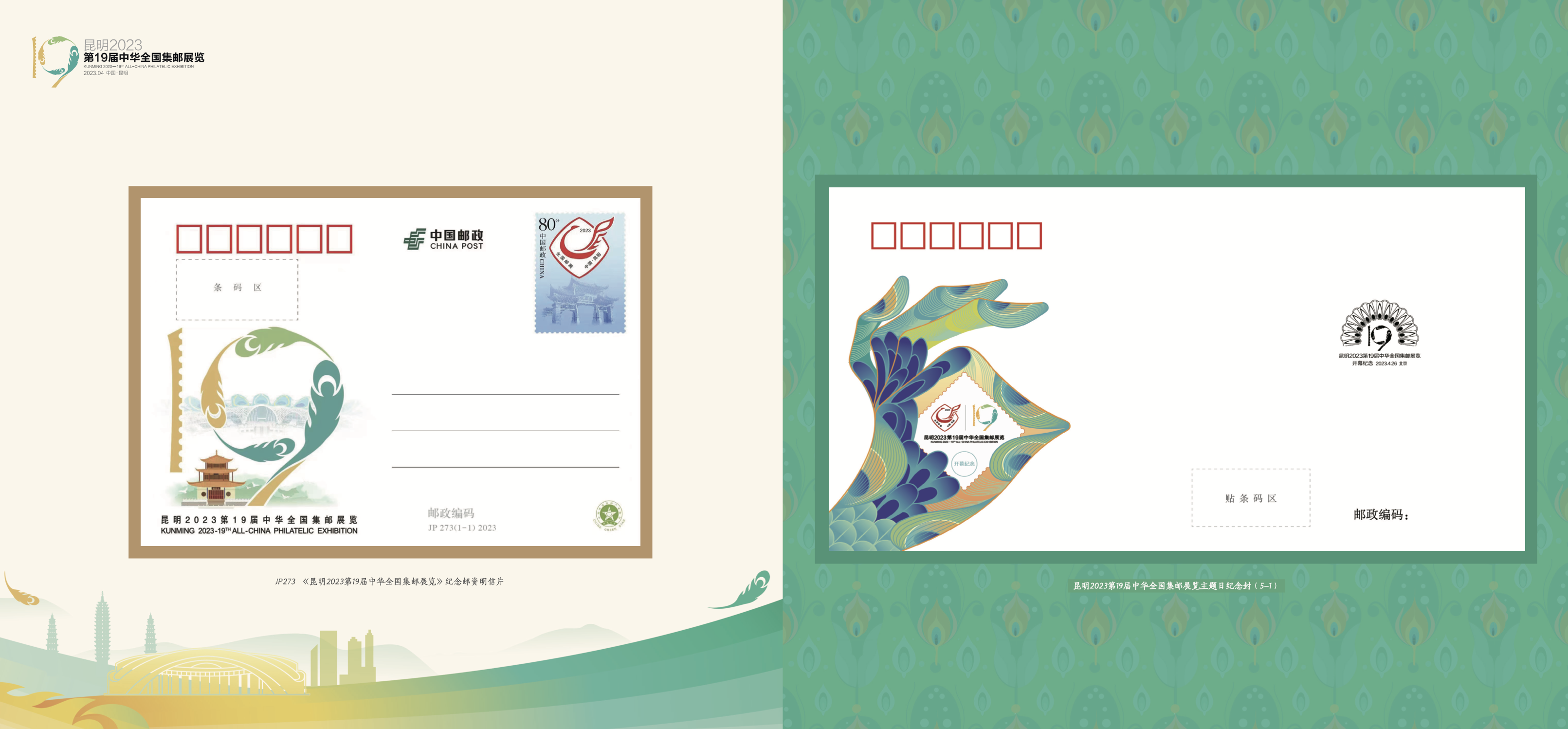 昆明2023邮展邮票张、纪念邮资明信片;邮展主题纪念封一套5枚;
