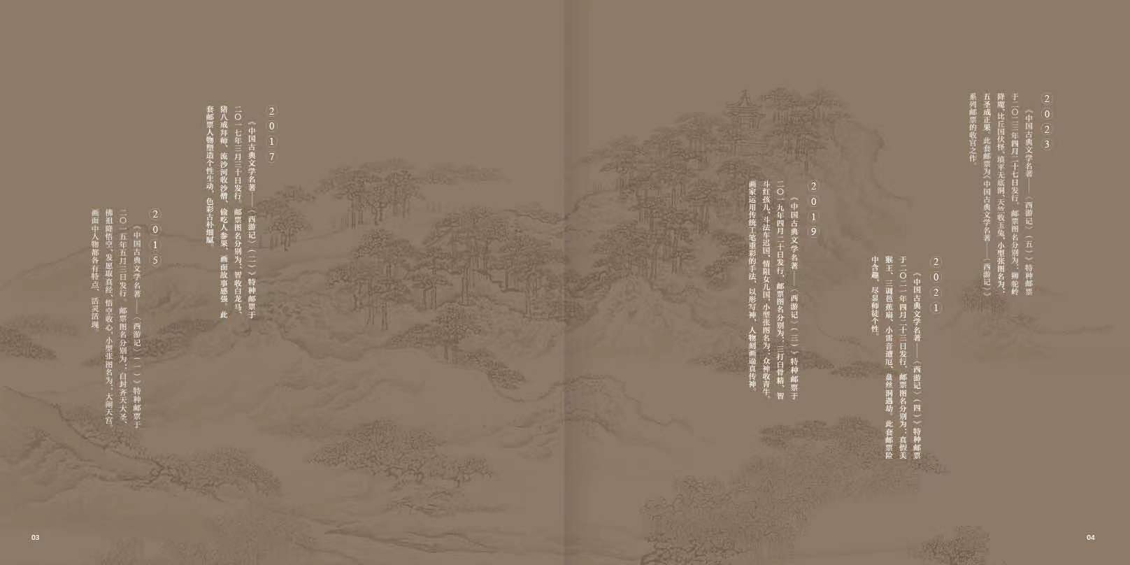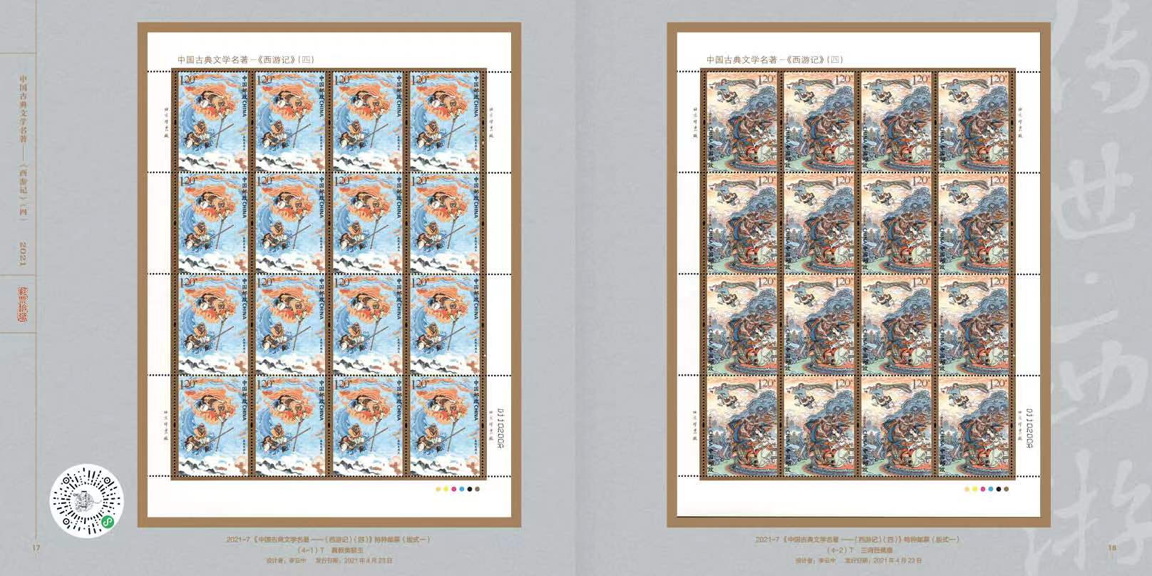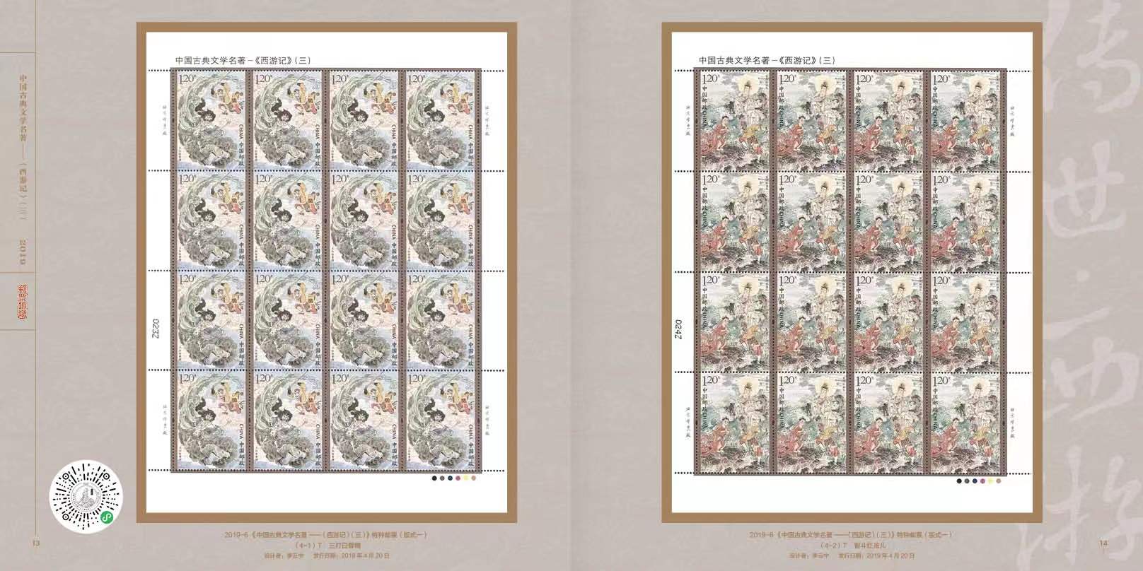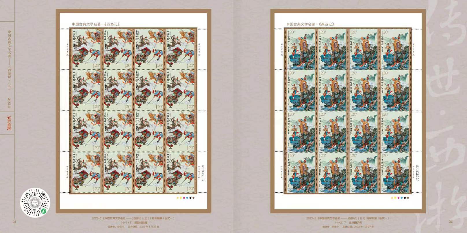 为弘扬经典,中国邮政从2015年开始发行“中国古典文学名著——《西游记》”邮票,截至2023年将发行至第五组,也是该系列的最后一组。邮票以传统工笔人物入画,借鉴连环画的表现形式,在形神兼备创作神话形象的同时,生动表现了大家熟知的故事情节。以方寸艺术再现了这部读者心中永远的经典。