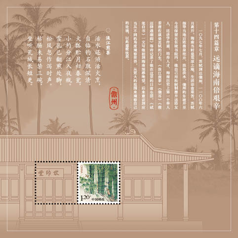 不仅是邮票册,也是邮戳集。苏东坡人生轨迹遍神州,栾城、眉山、开封、凤翔(今属宝鸡)、杭州、密州(今诸城)、徐州、湖州、黄州、颍州(今阜阳)、扬州、定州、惠州、儋州、常州、郏县等地市共同形成了“苏东坡文化”的印迹。本册设计了16款东坡足迹纪念戳,还预留空白区域供消费者实地盖戳。适合在苏轼纪念馆、景点等地销售,配合盖戳服务营销。