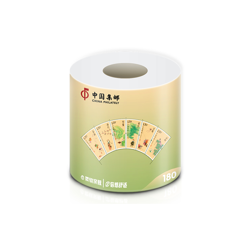 中国集邮有限公司于2023年8月28日发行《中国集邮牌卫生纸(有芯)10卷装》一提,每提含10卷180克卷纸。