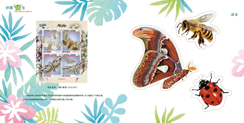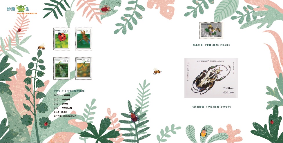 内插《昆虫(一)》套票、 《昆虫(二)》套票、马达加斯加《甲虫》型张、坦桑尼亚《蜜蜂》、塞拉利昂《蛾子》