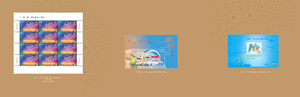 中国邮政《“一带一路”倡议提出十周年》纪念邮票版式一,中国香港、中国澳门发行《共建“一带一路”倡议十周年》小型张。