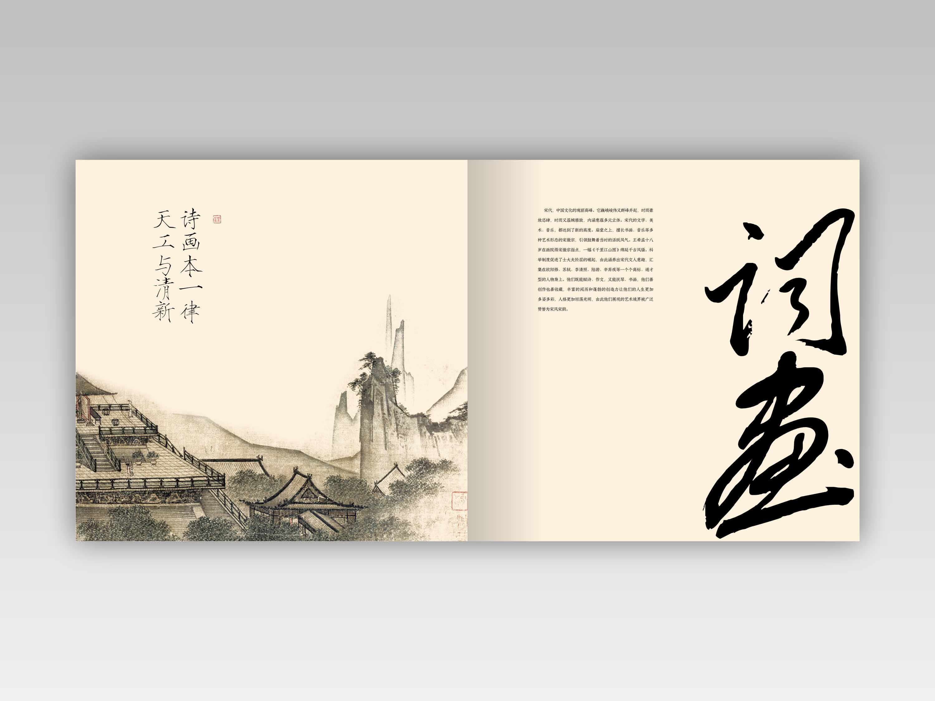 产品内页展示了十余幅宋代绘画,包含宋徽宗、马远、李迪、马麟、冯大有等著名宋代画家的杰作。配以相应的诗文,尽显诗情画意。