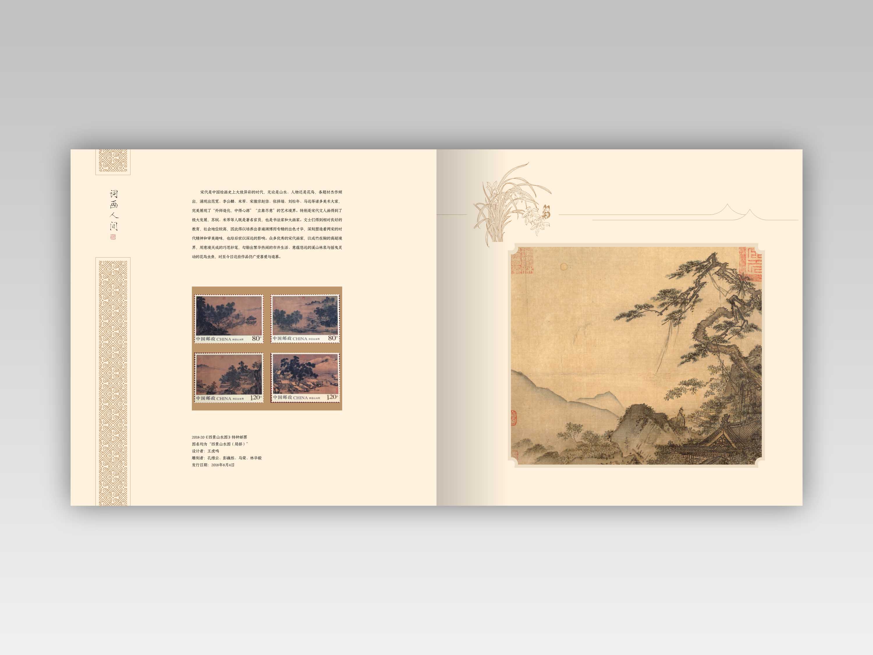 1.产品内含《中国古代文学家(五)》新邮整版(一套五版),以及《宋词》、《千里江山图》、《四景山水图》等宋代绘画邮票。