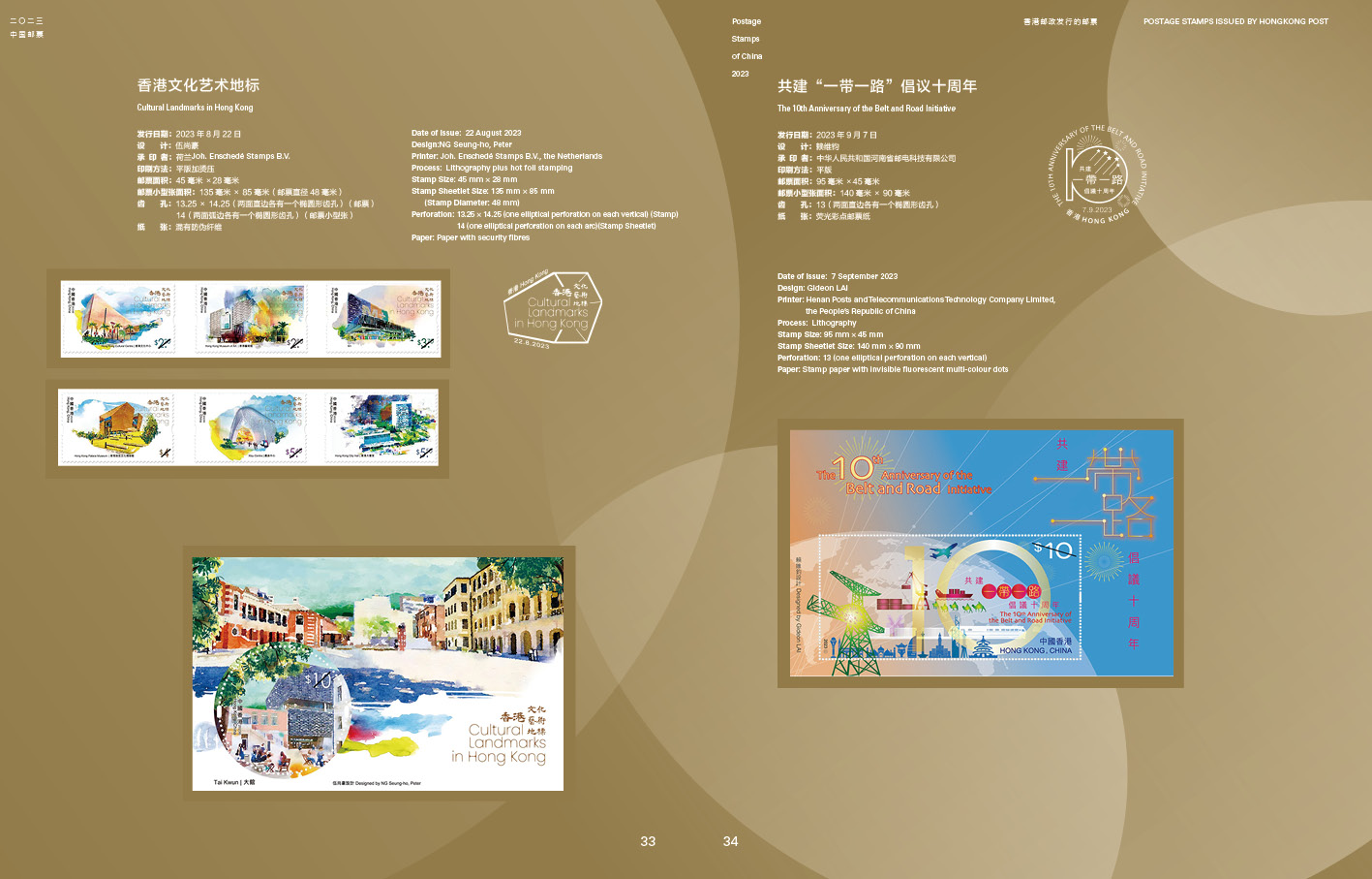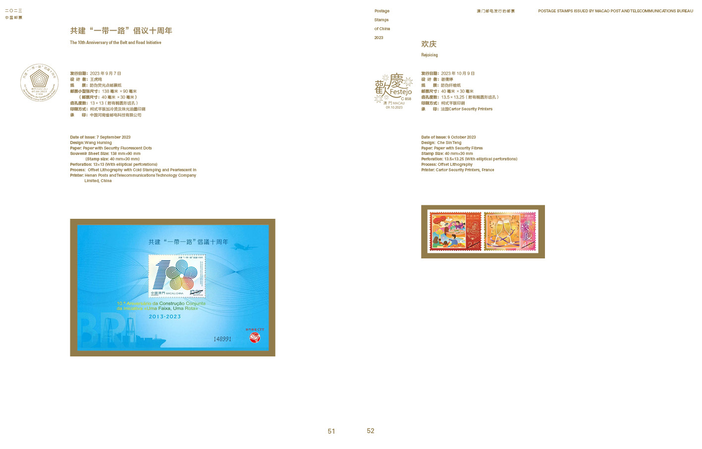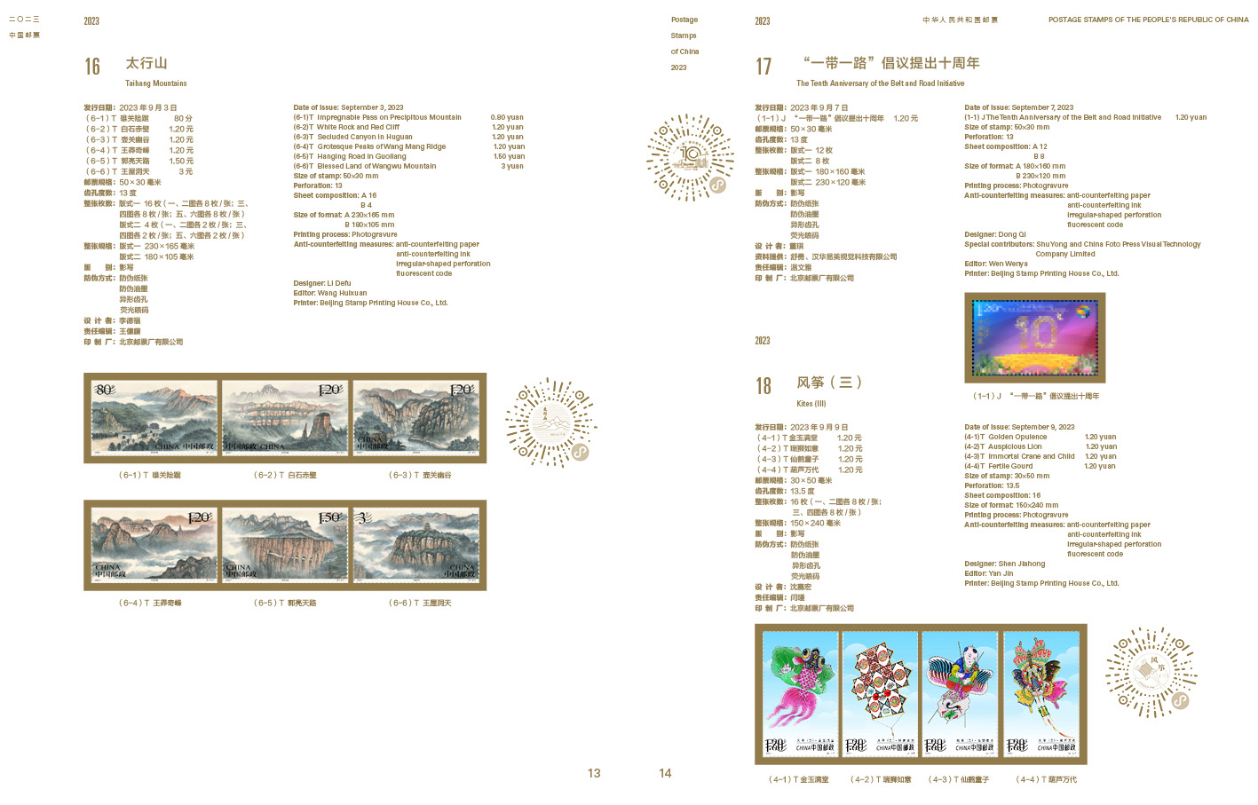 2023年纪特邮票套票+小型张+小全张+小本票+版式二+港澳票+“一带一路”倡议提出十周年联发小本票,配同心版专用手提袋。