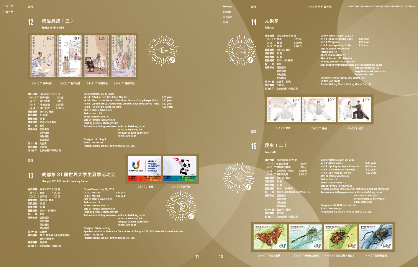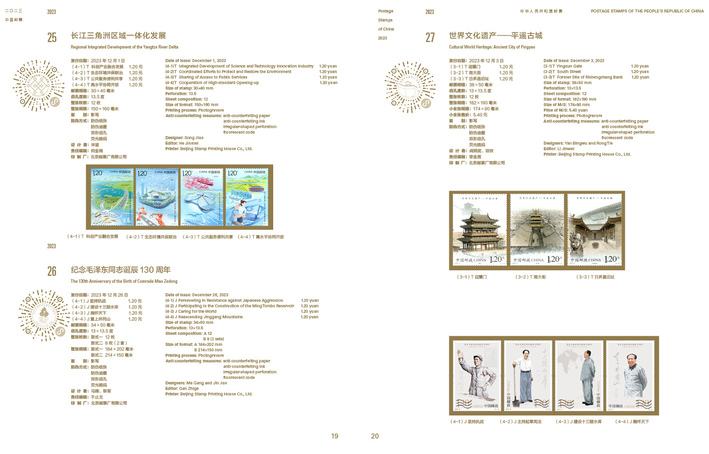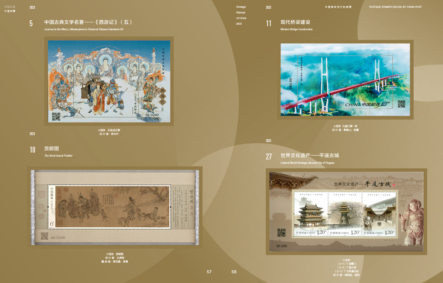 2023年纪特邮票套票+小型张+小全张+小本票+版式二+港澳票+“一带一路”倡议提出十周年联发小本票,配同心版专用手提袋。