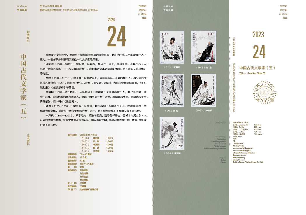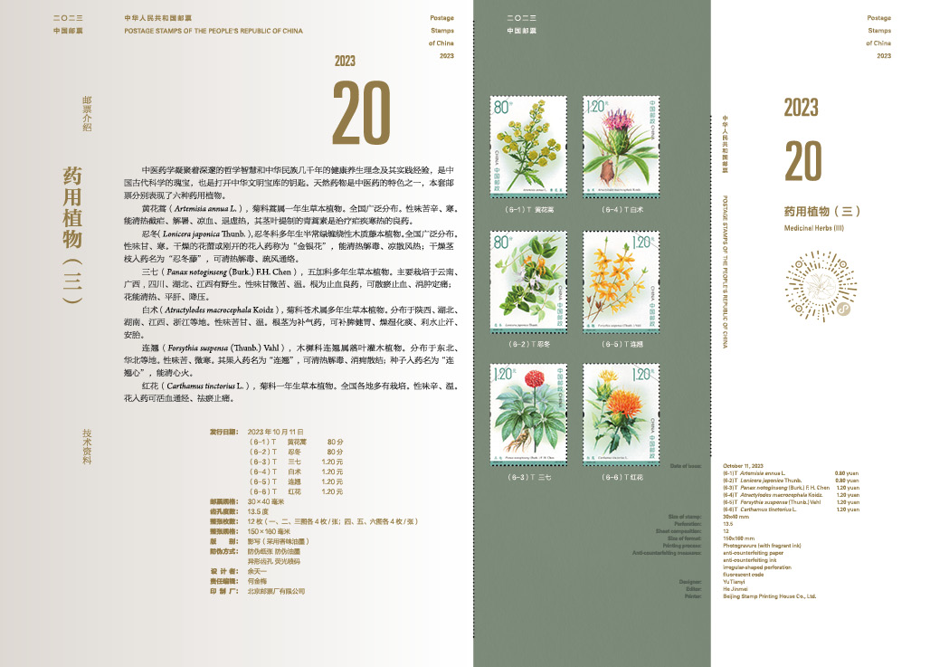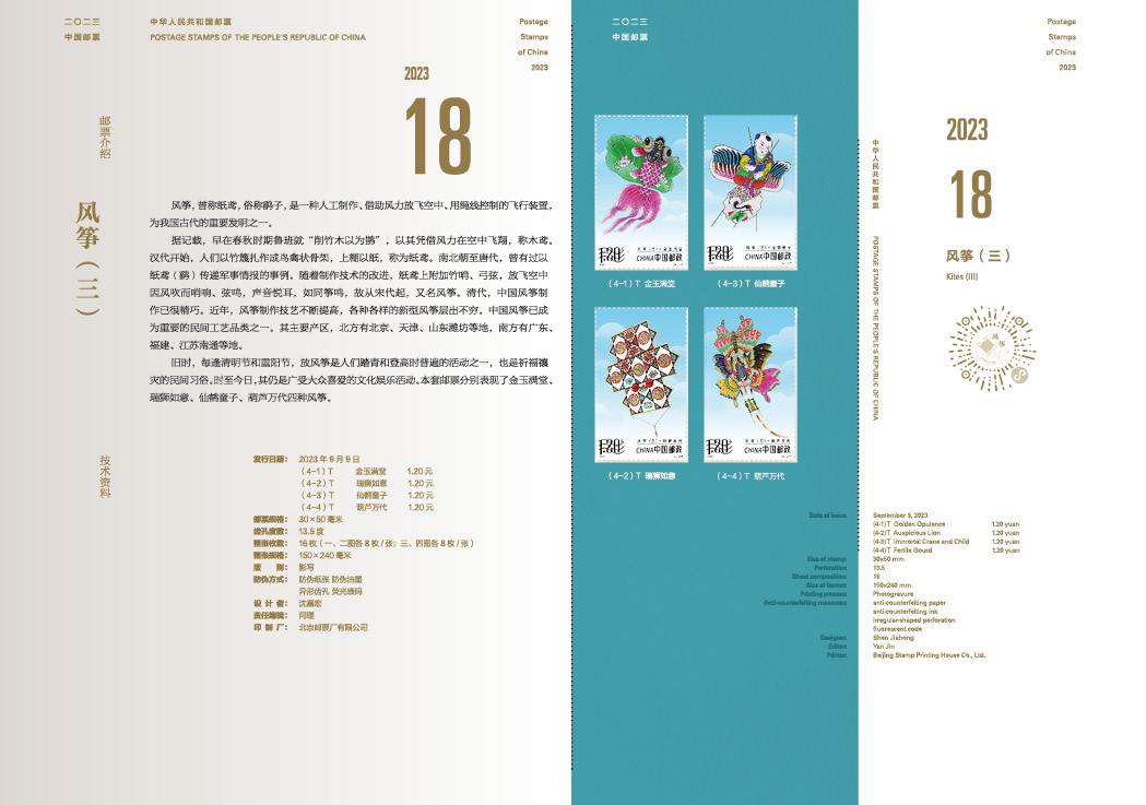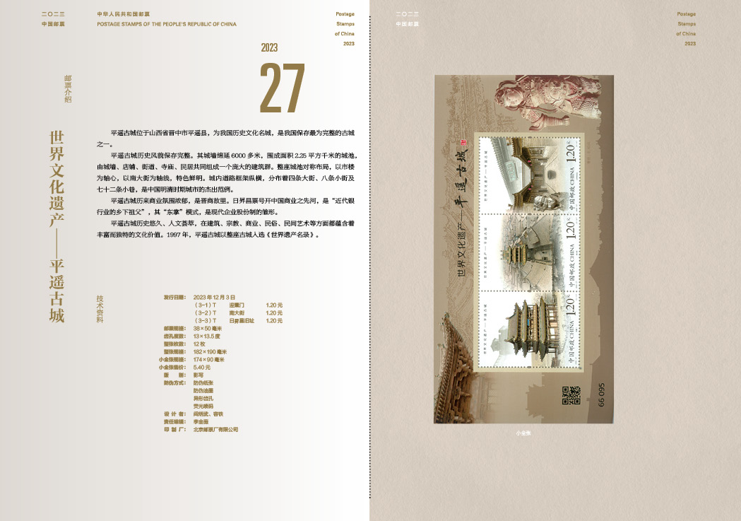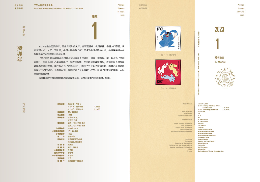 包含2023年纪特邮票(含小型张、小全张),2022年佳邮评选纪念张,《货郎图》无齿邮票页。
