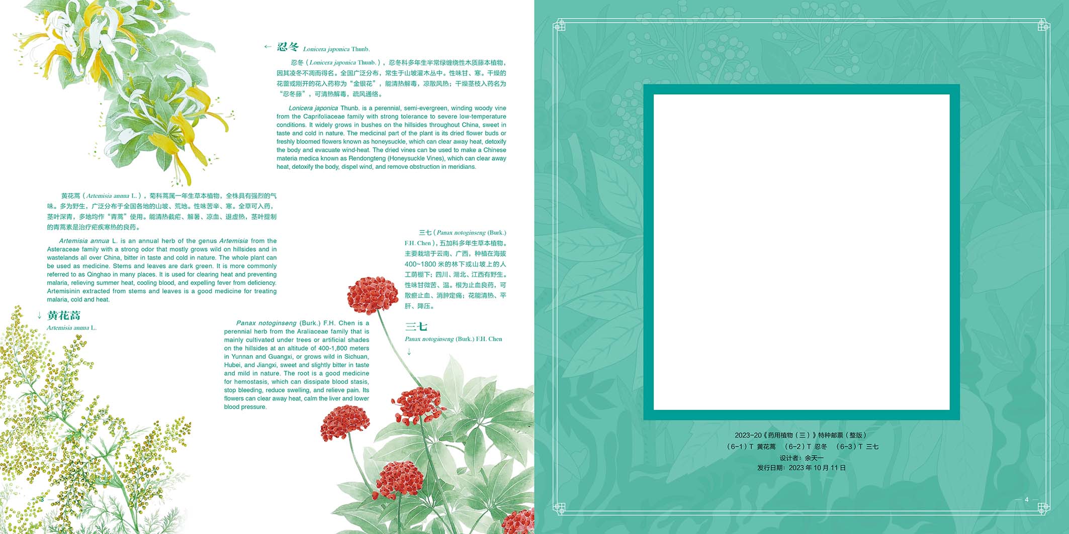 中国集邮有限公司于2023年9月11日发行《药用植物(三)》邮册。