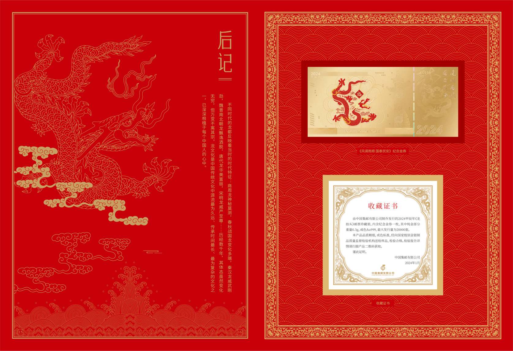 中国集邮有限公司定于2024年1月15日发行《龙抬头》邮票珍藏册。