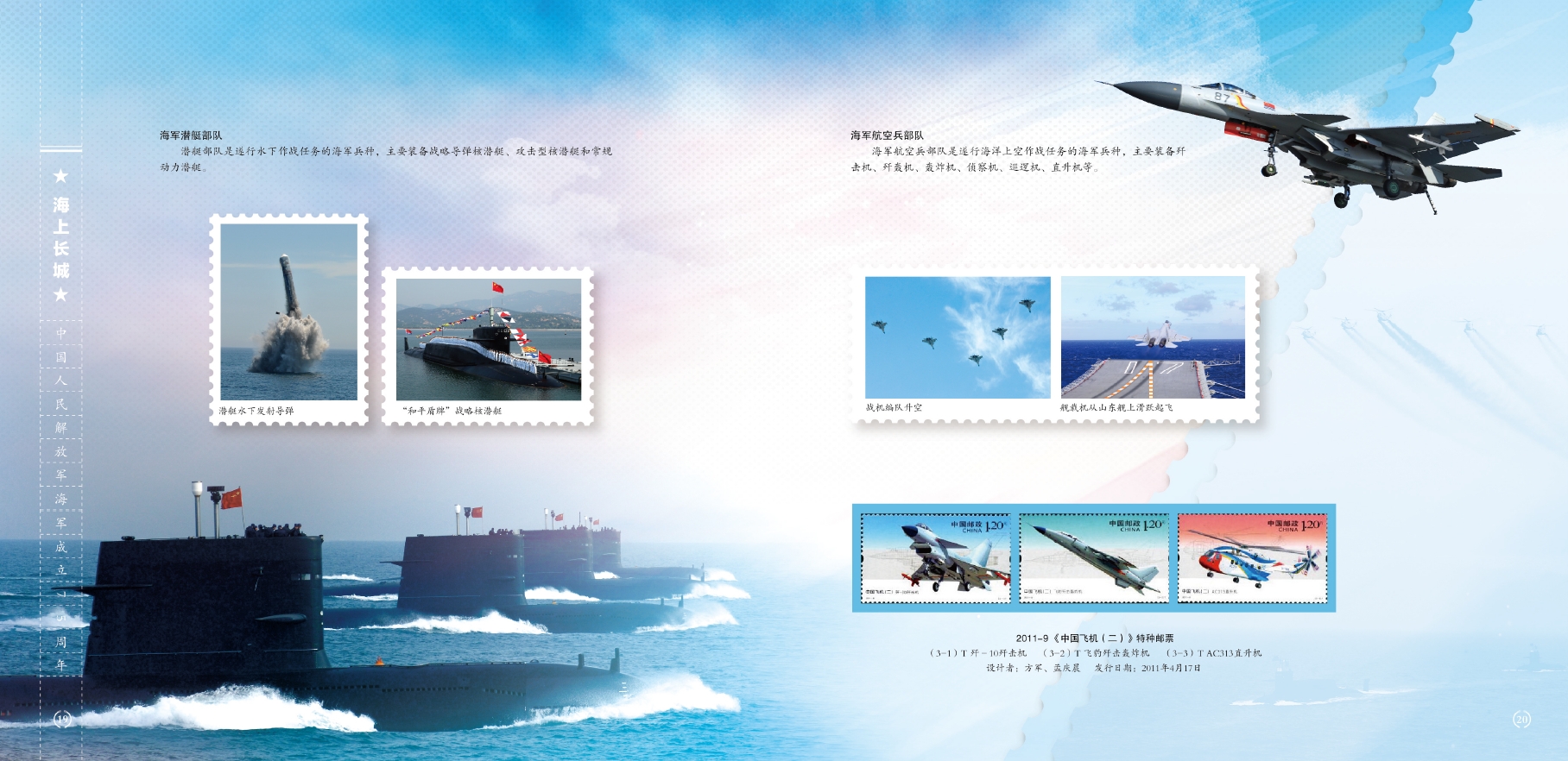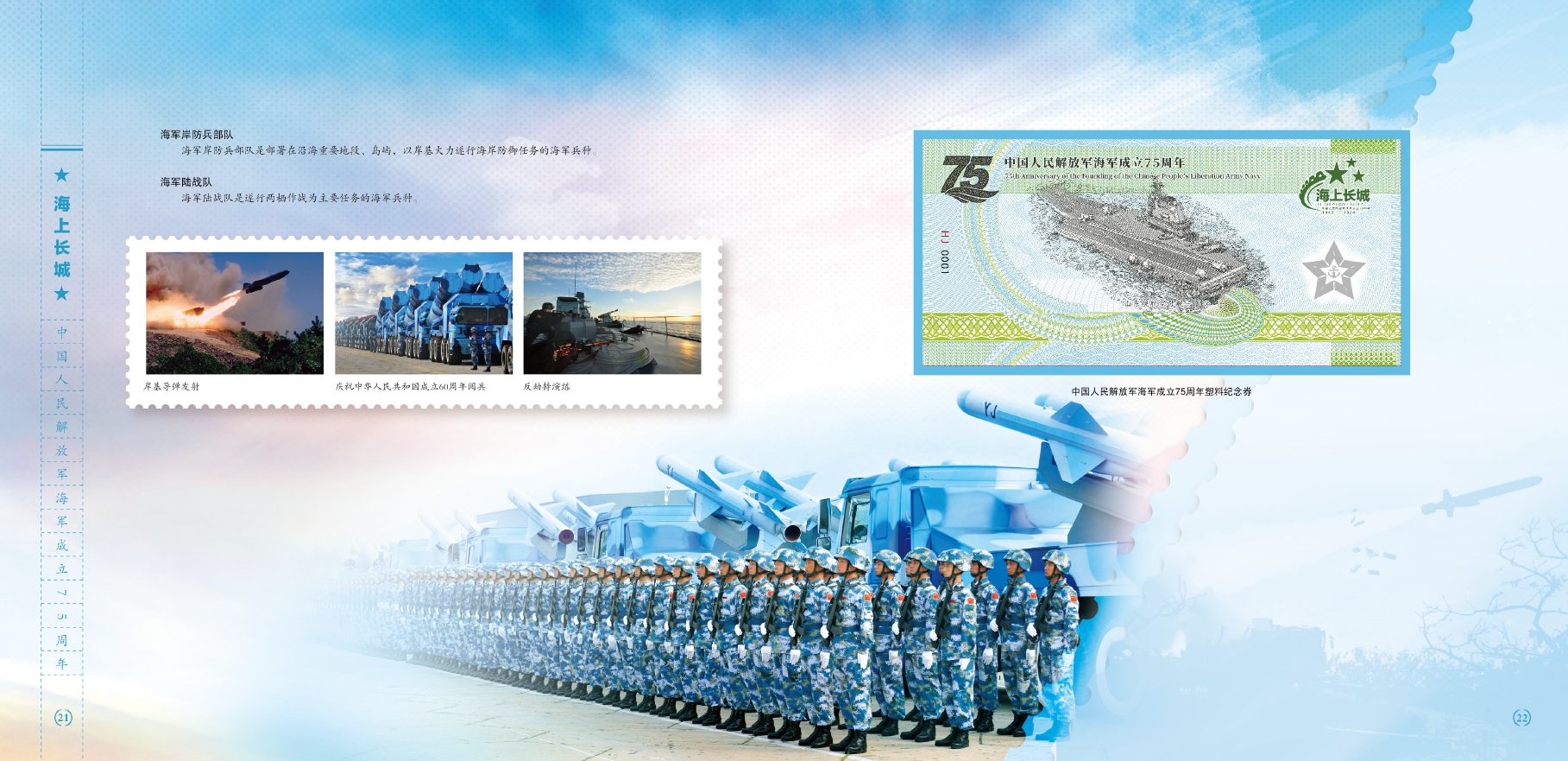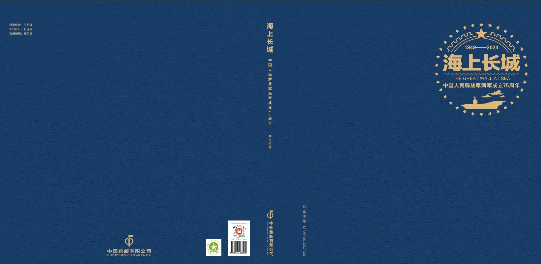 中国集邮有限公司发行《海上长城—海军成立75周年》纪念邮册一套。