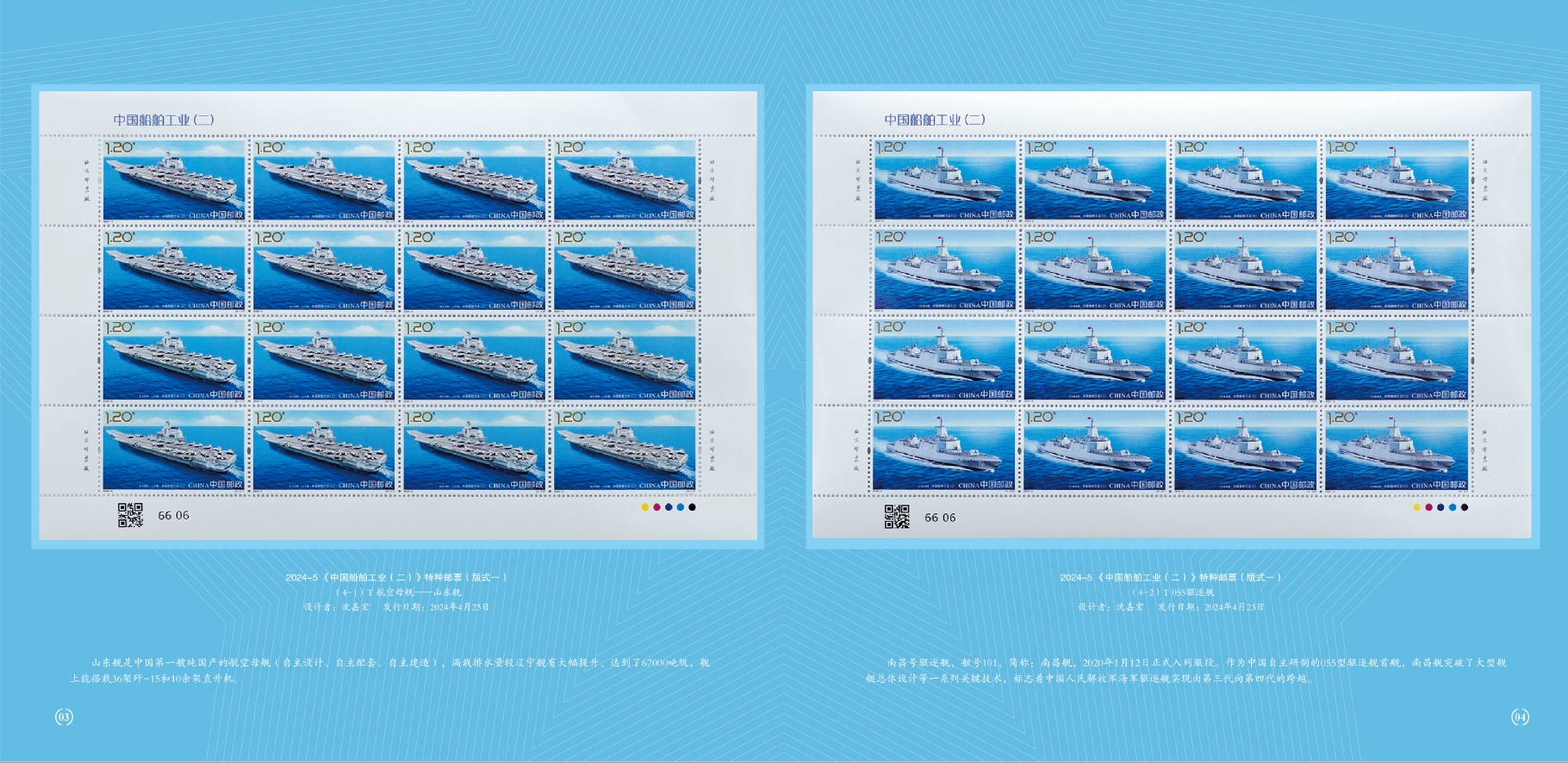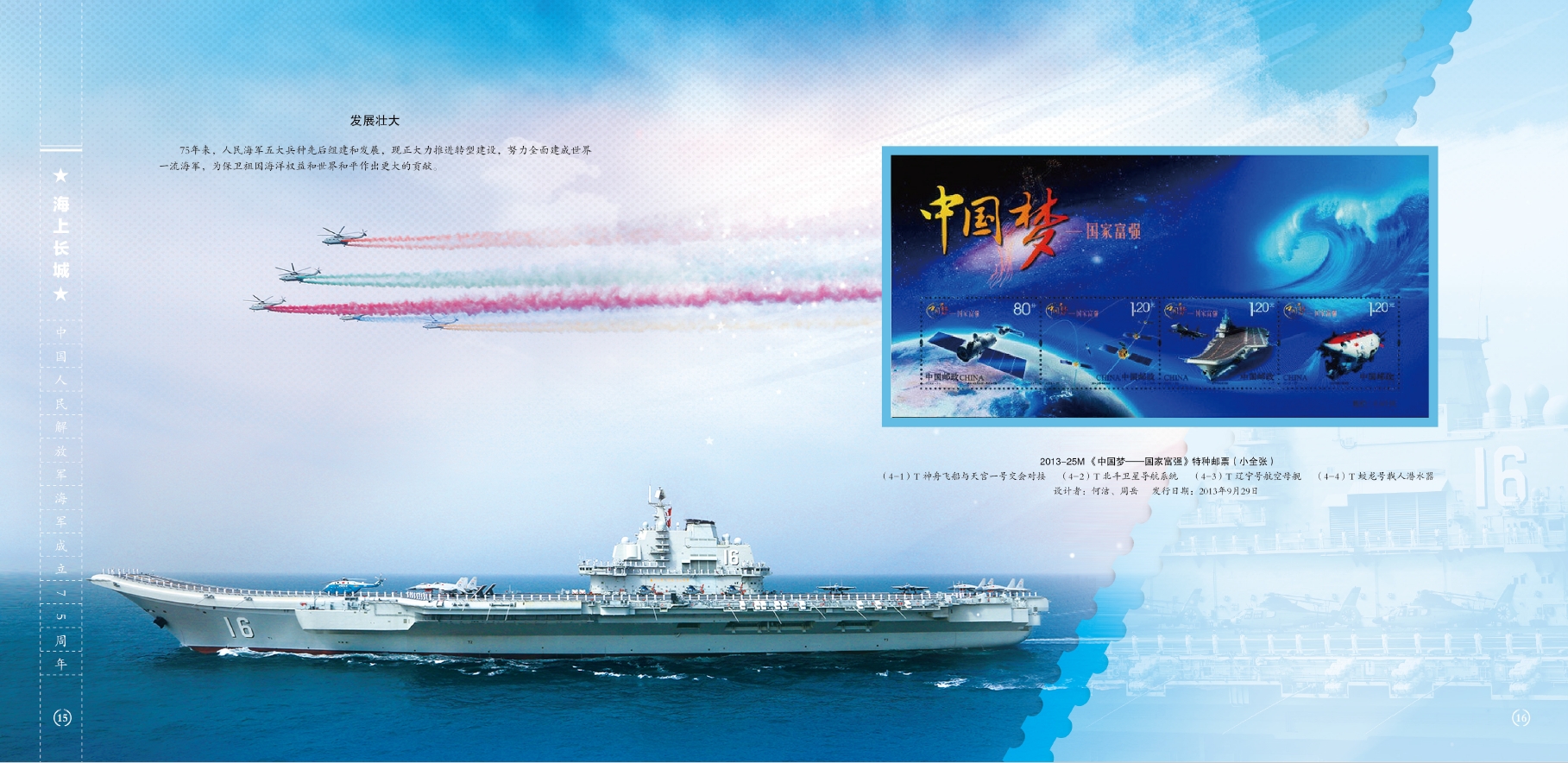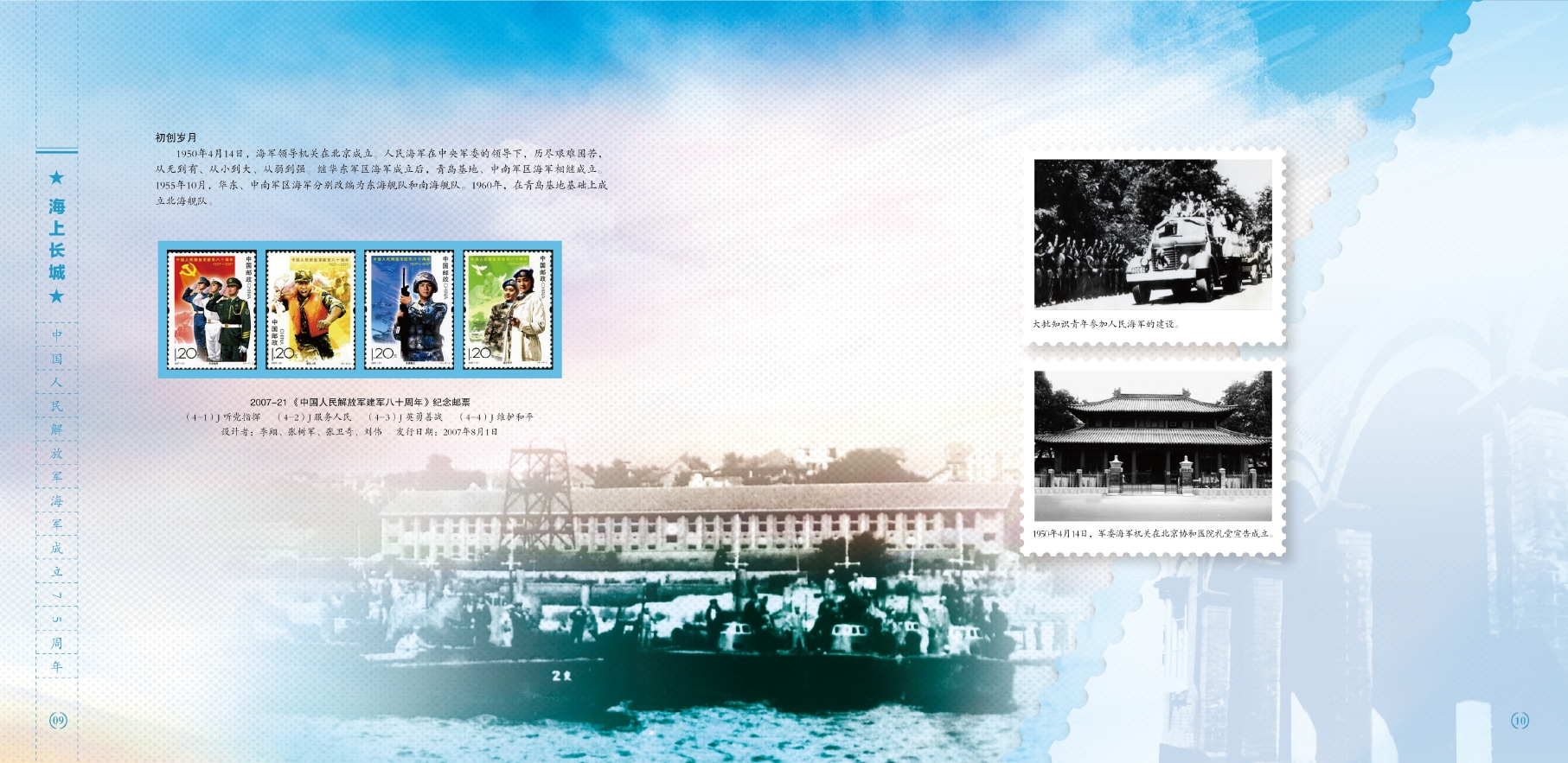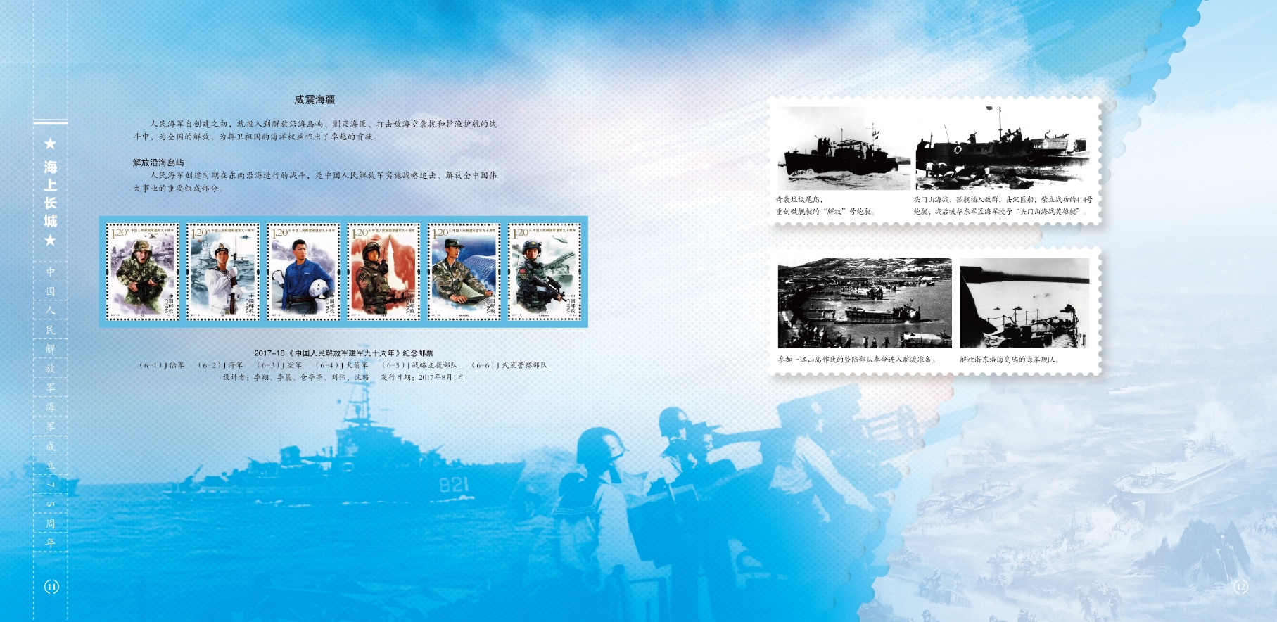 中国集邮有限公司发行《海上长城—海军成立75周年》纪念邮册一套。