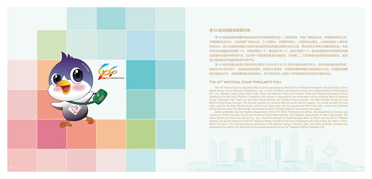 中国集邮有限公司于2024年5月25日发行《第44届全国最佳邮票评选活动》珍藏册。