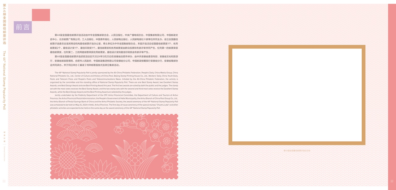 中国集邮有限公司于2024年5月25日发行《第44届全国最佳邮票评选活动》版票纪念册。