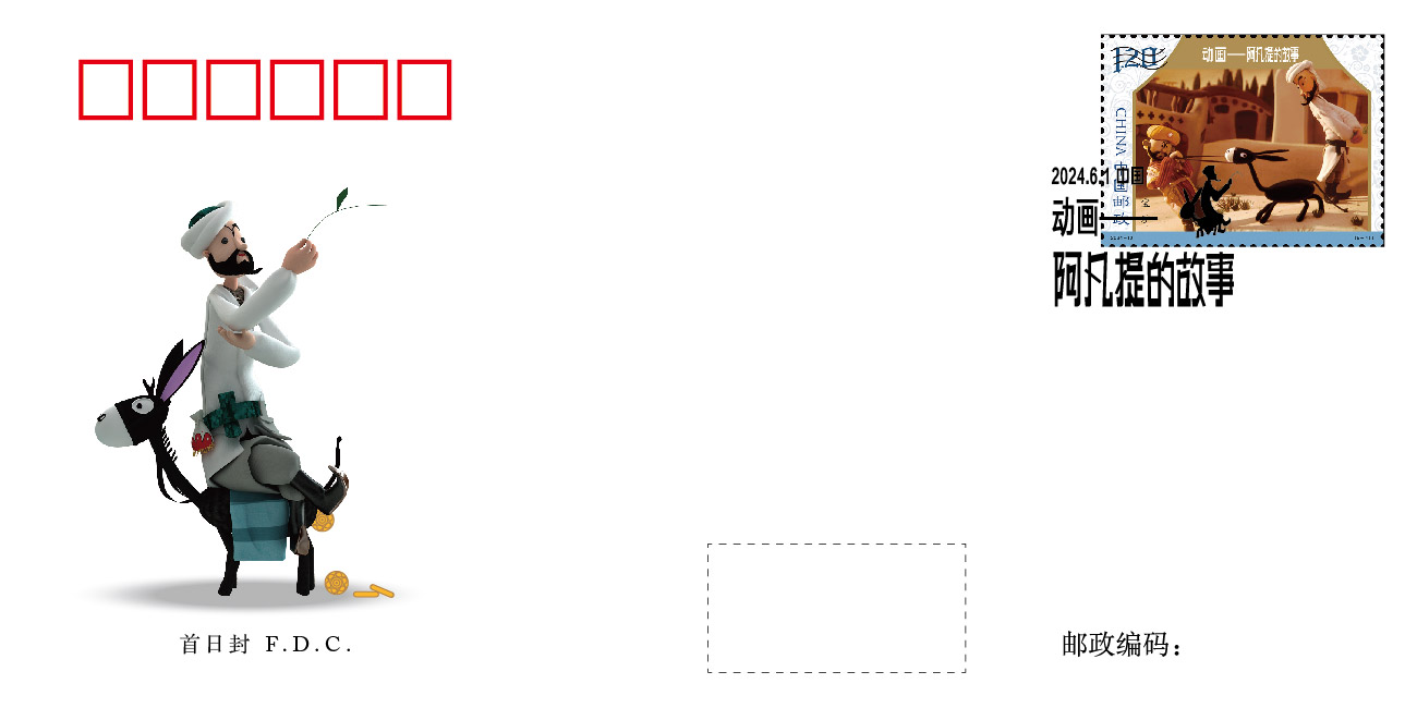 中国集邮有限公司于2024年6月1日发行《动画——阿凡提的故事》首日封,盖销首日戳。