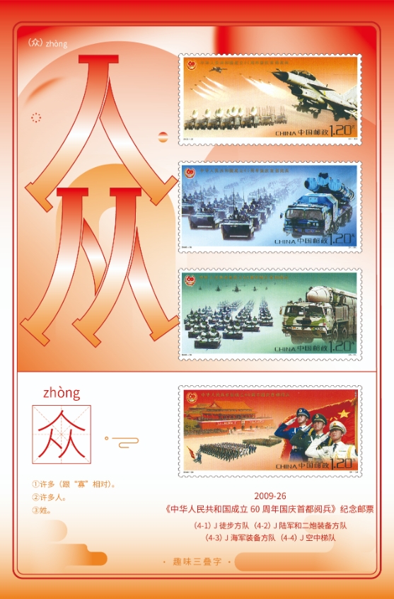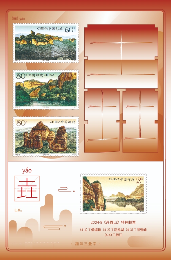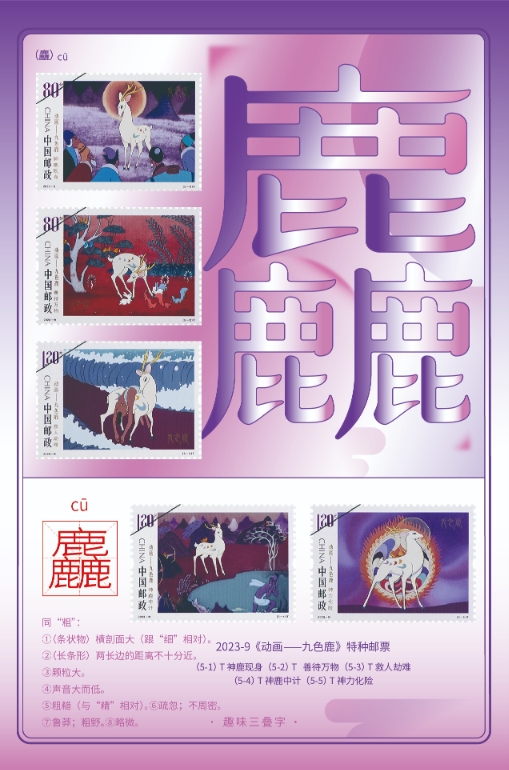 本产品特别收录了18个三叠字,结合相应的纪特邮票,通过有趣的方式,带领大家了解趣味文字,探索相关的百科知识