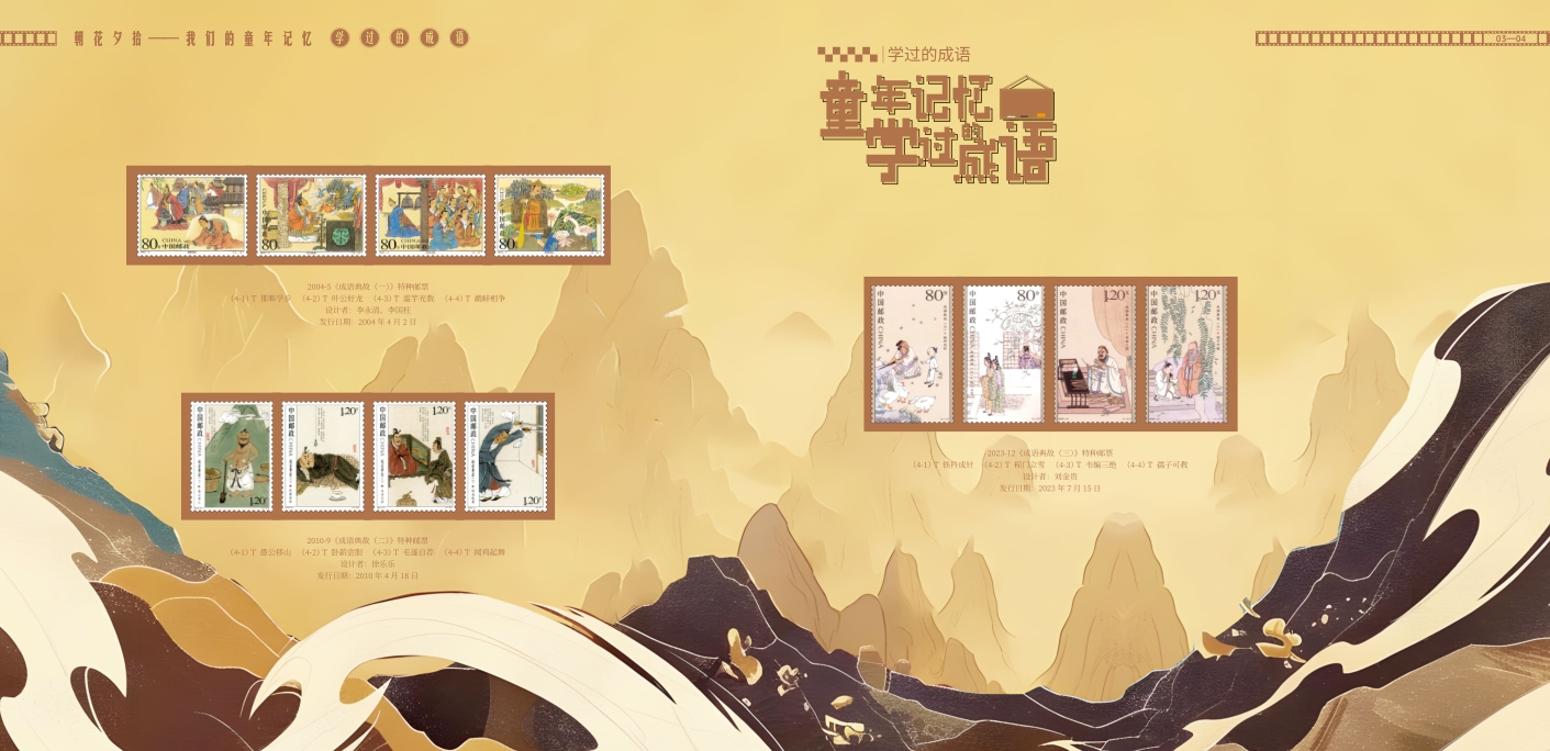 产品收录了各种童年相关的邮票,展现了我们的童年听过的故事、学过的成语、画过的图画、玩过的游戏等。