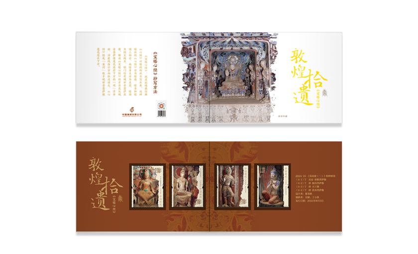 信封包装,内含邮折(2024-16《莫高窟(二)》邮票)、宝塔心经经文彩色原贴一张、描红抄经贴一套九张
