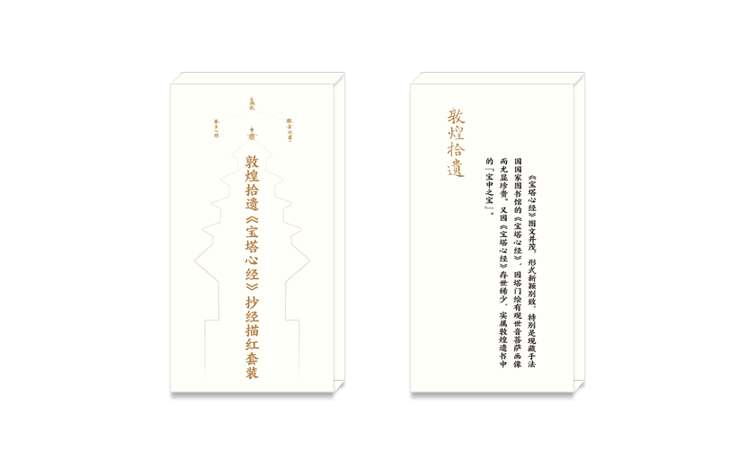 《宝塔心经》图文并茂,形式新颖别致,极具趣味性和观赏性,本品中所含的字帖原本为现藏于法国国家图书馆的《宝塔心经》,因塔门绘有观世音菩萨画像而尤显珍贵。