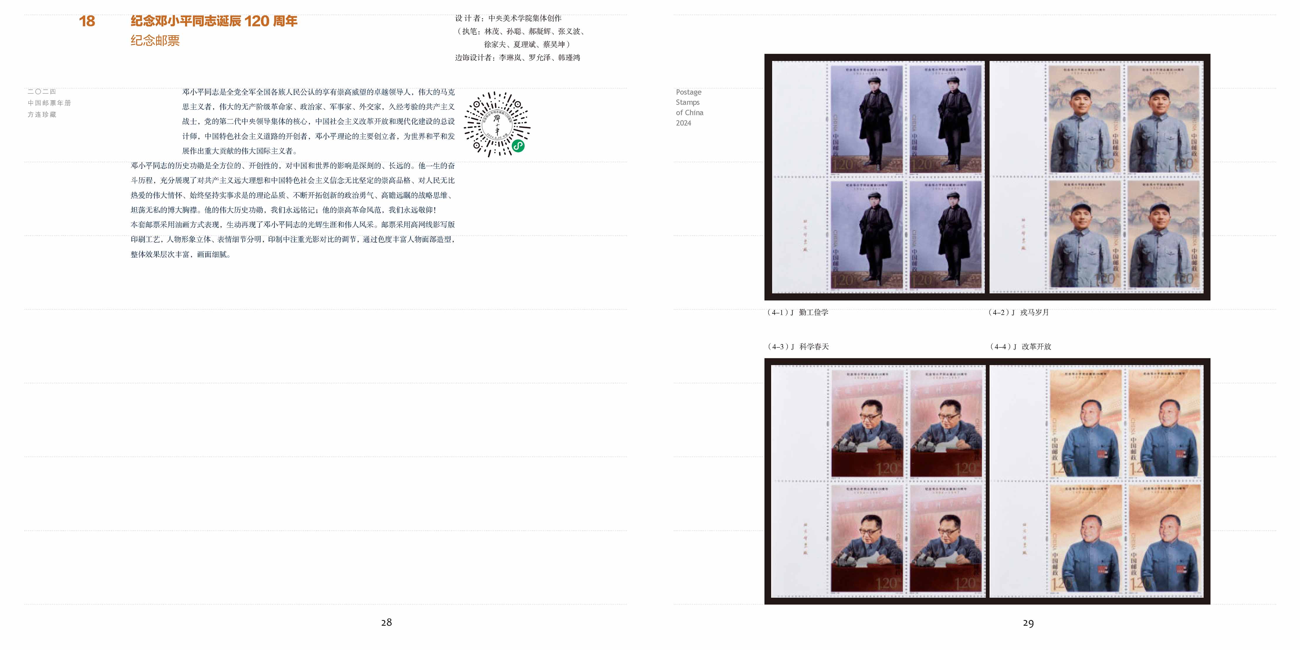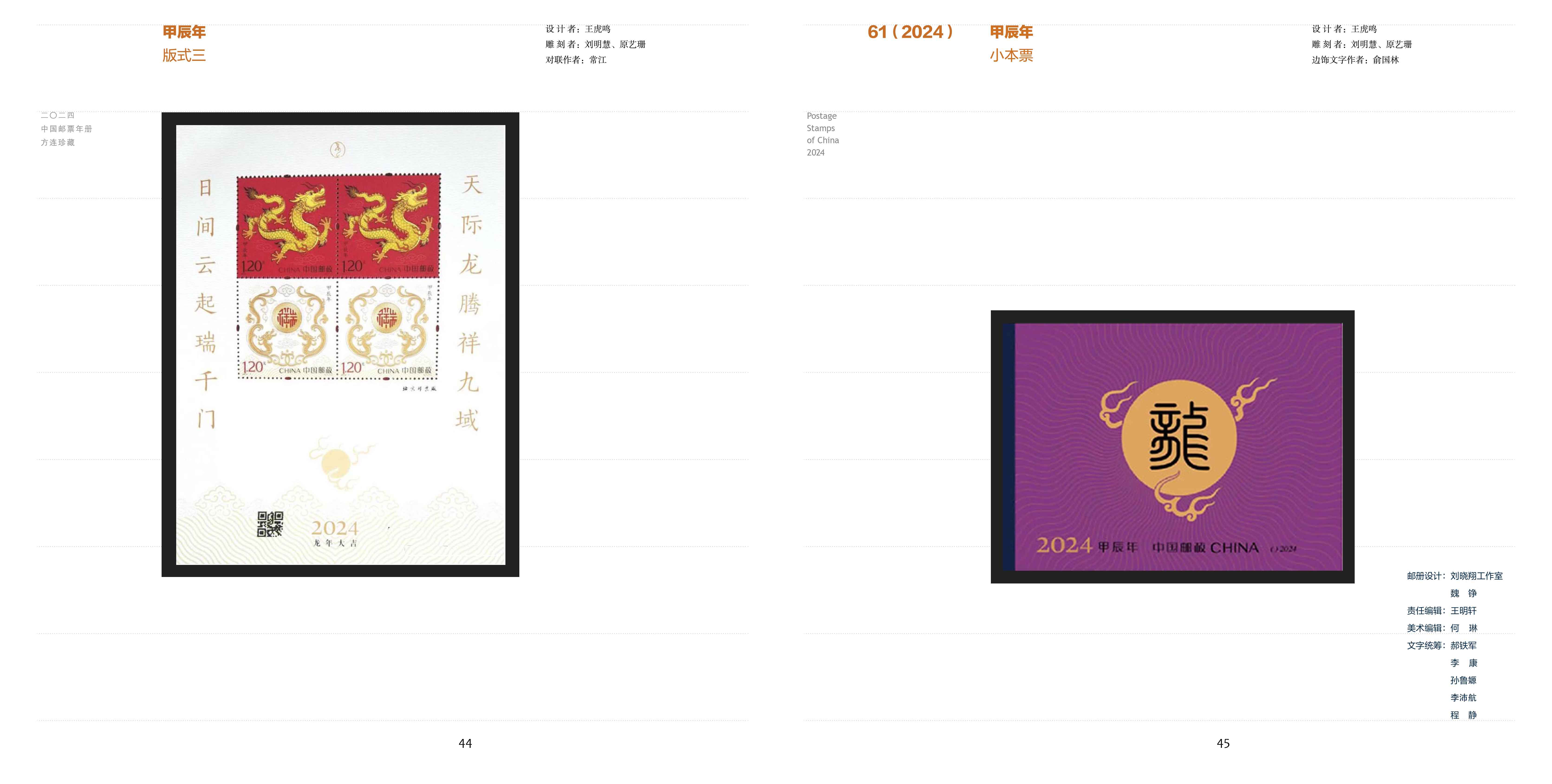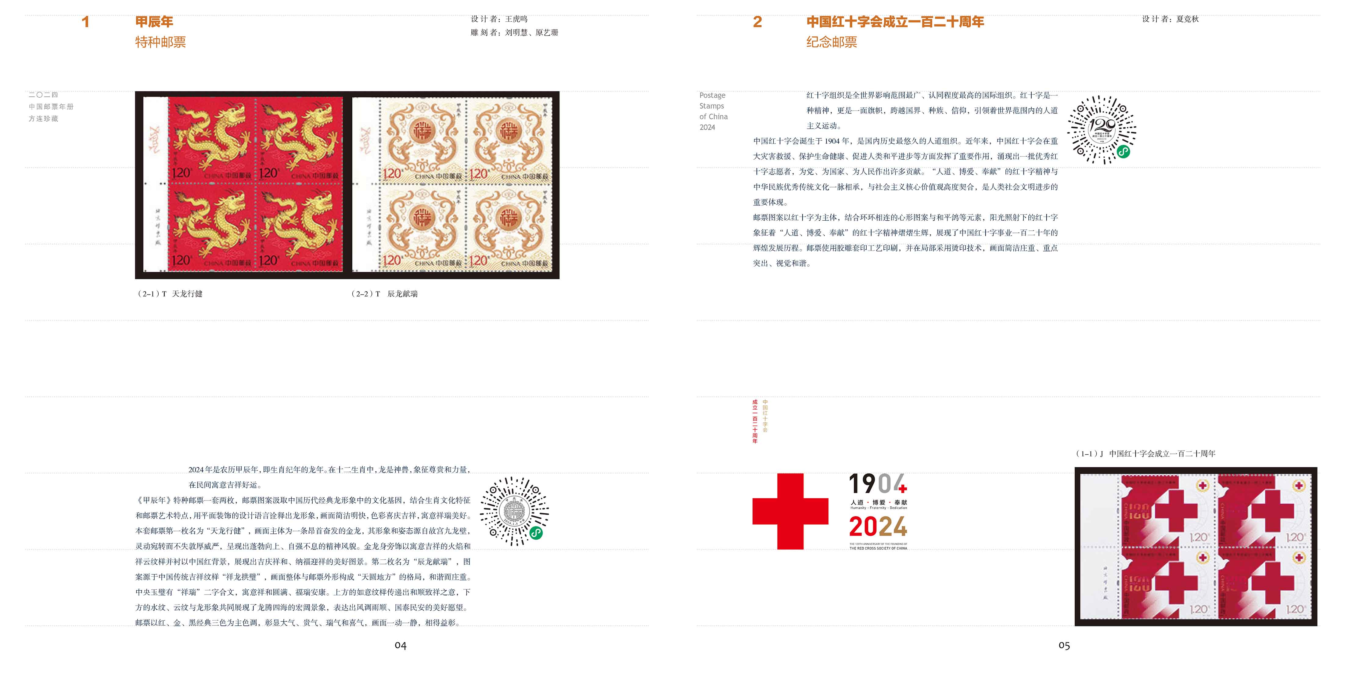 2024年全年纪特邮票方连+小型张+小本票+个性化票原票方连,2024-1《甲辰年》赠送版,邮票目录纪念张。