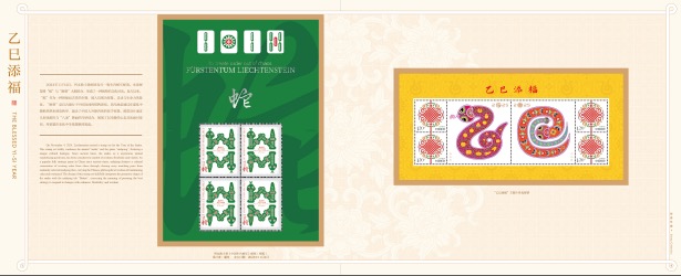 《乙巳年》版式一、联合国邮政《中国农历蛇年》整版、列支敦士登蛇年邮票小版张、《乙巳添福》个性化邮票