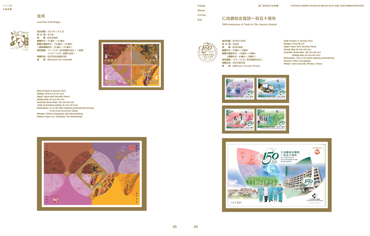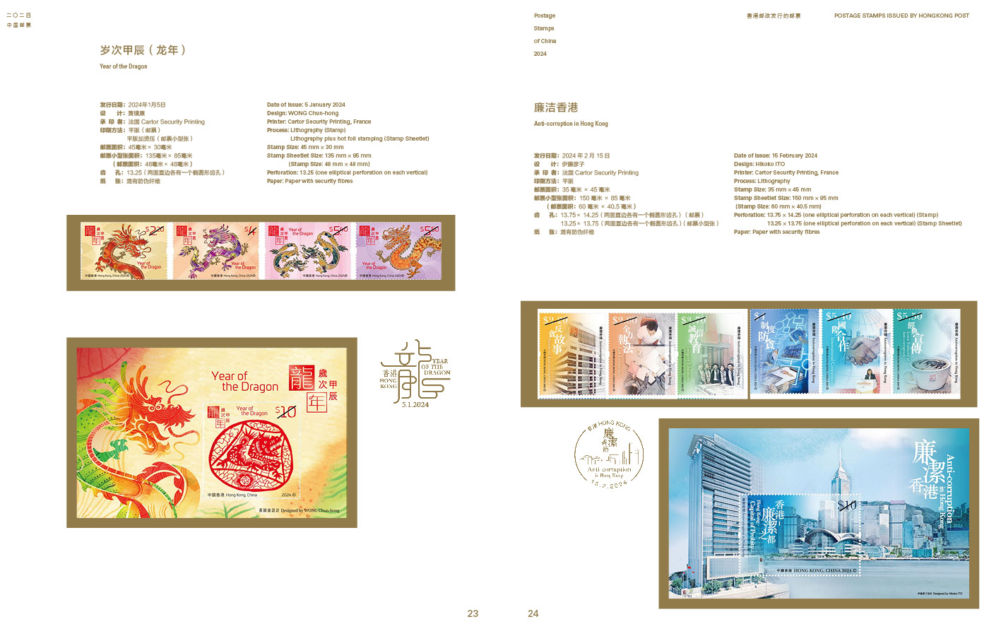 2024年全年纪特邮票套票+小型张+小本票+版式二,港澳票,生肖三地联发小全张,配同心版专用手提袋。