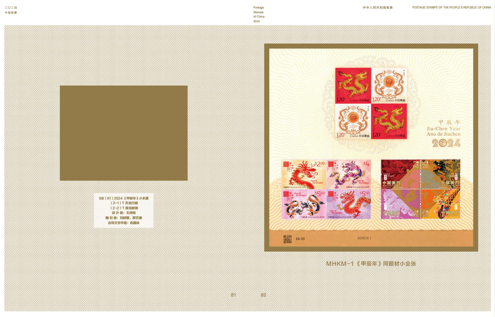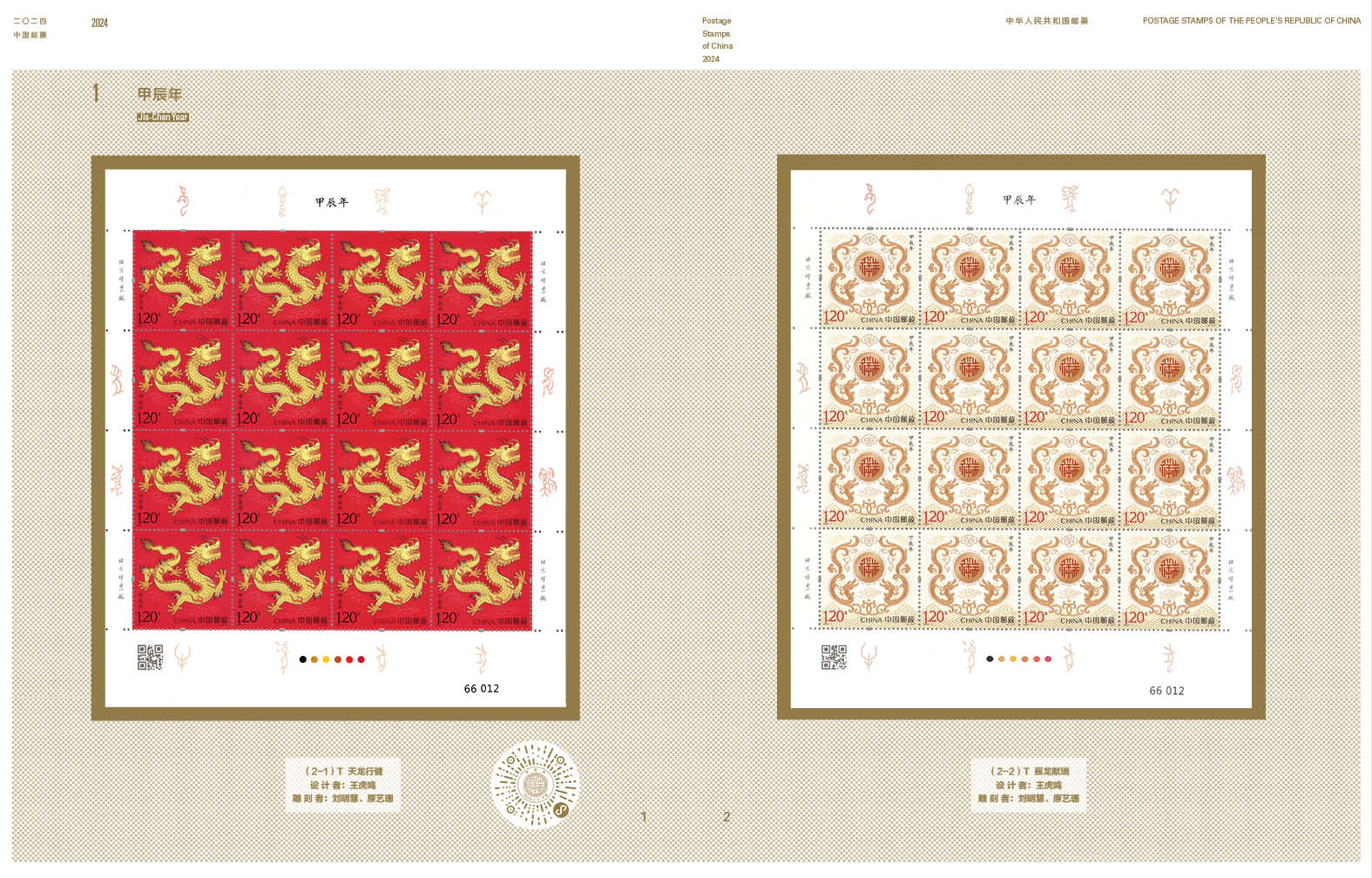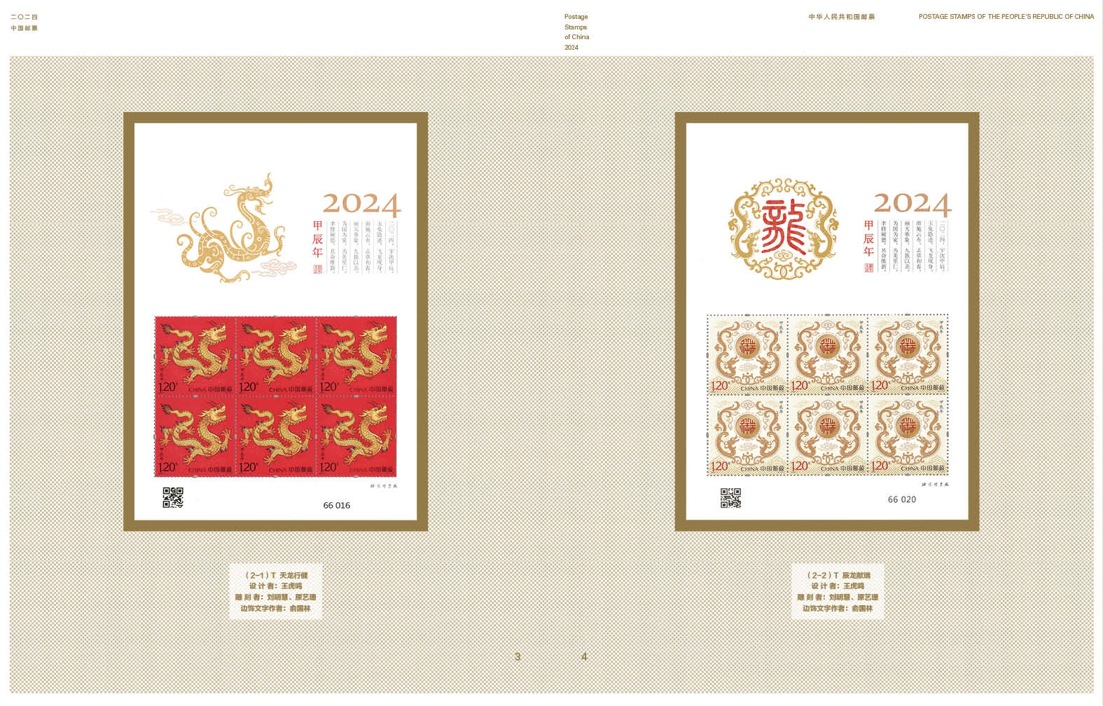 2024年全年纪特邮票版式一+版式二+小型张+小本票+个性化邮票版票+贺年专用邮票版票(2套),部分量少品种+《甲辰年》邮票金,配珍藏版专用手提袋